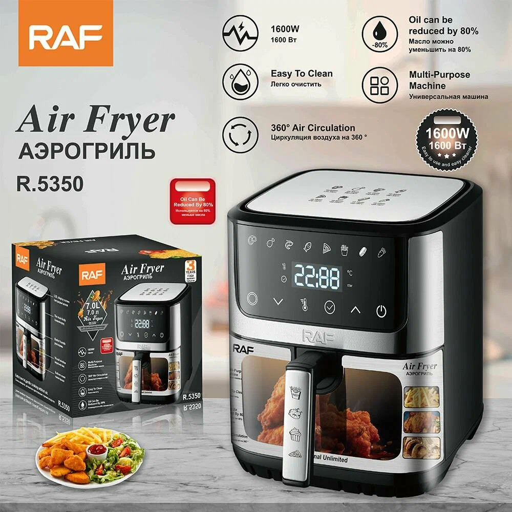 Откройте для себя мир вкусной и здоровой еды с аэрогрилем RAF! Этот многофункциональный прибор преобразит вашу кухню, позволяя готовить любимые блюда с минимальным количеством масла — экономия до 80%!