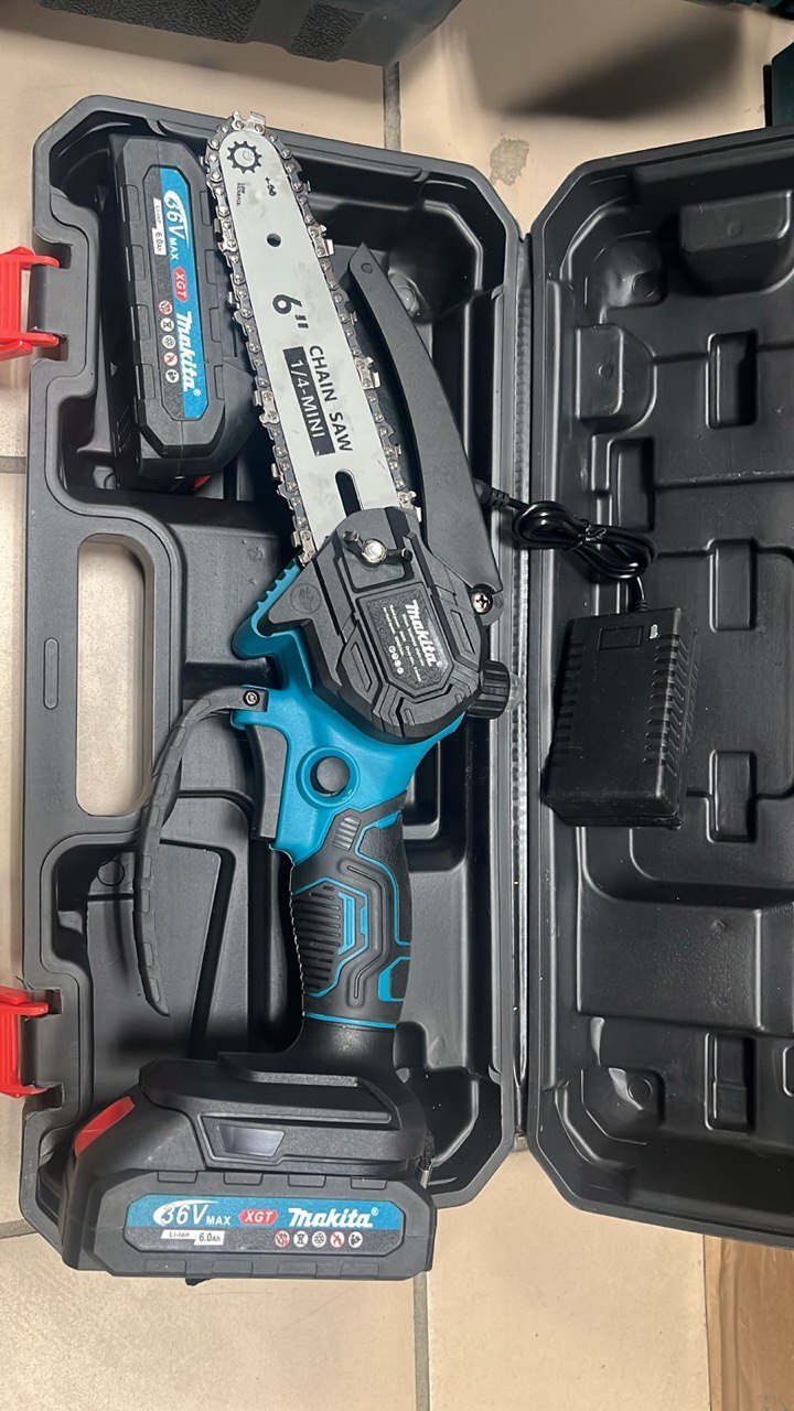 • Комплект поставки: Пила поставляется в прочном кейсе, в котором удобно хранить и транспортировать инструмент. В комплект входит сам инструмент, аккумулятор, зарядное устройство и руководство пользователя.