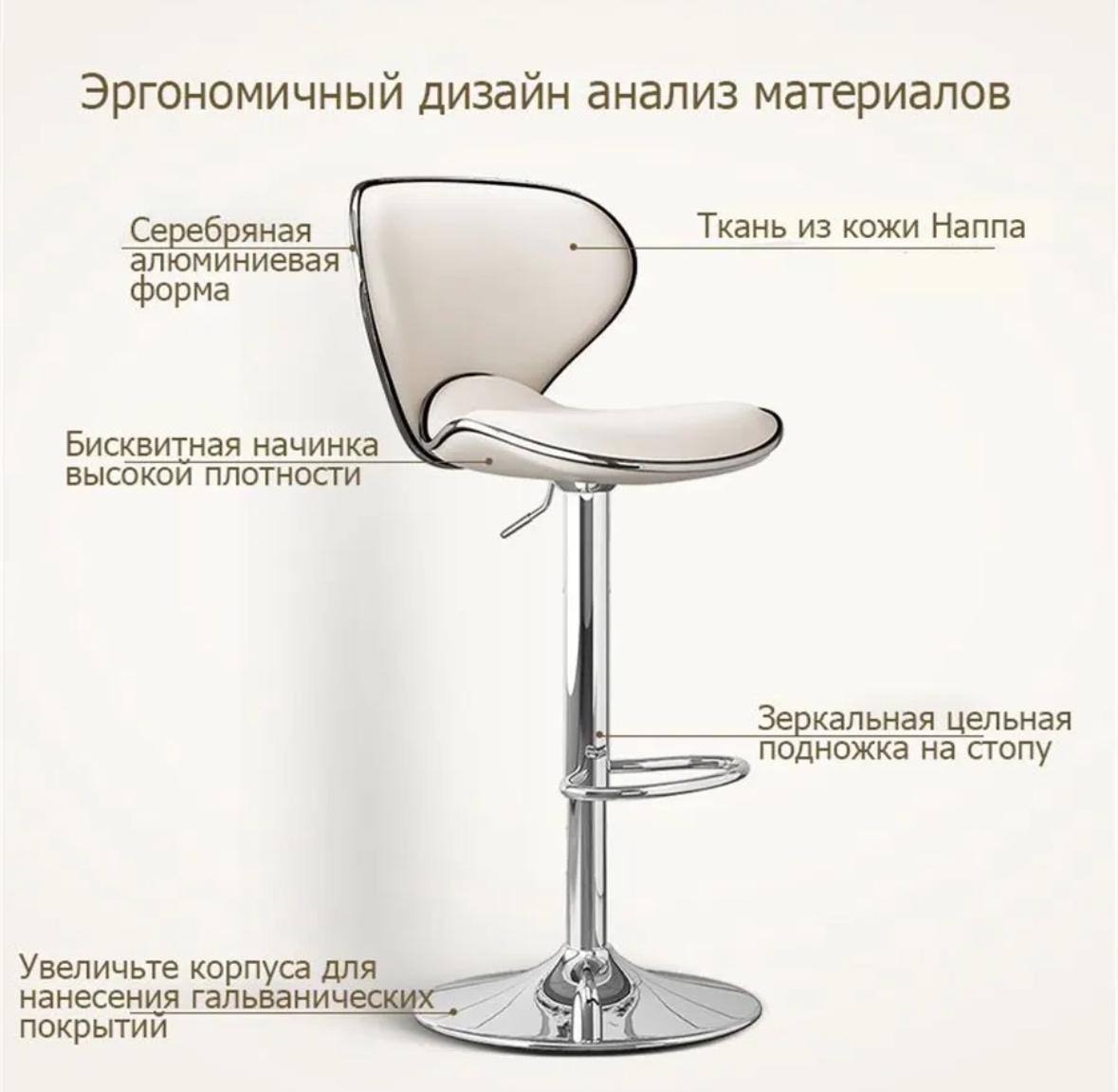 Регулировка высоты: механизм позволяет легко настроить высоту стула под индивидуальные предпочтения — идеально подходит для барных стоек разной высоты.