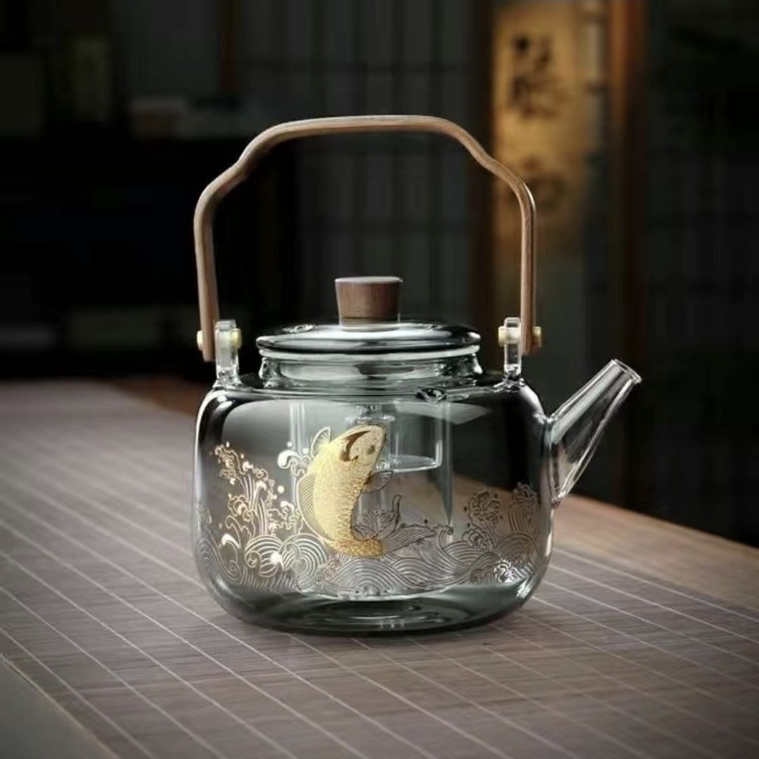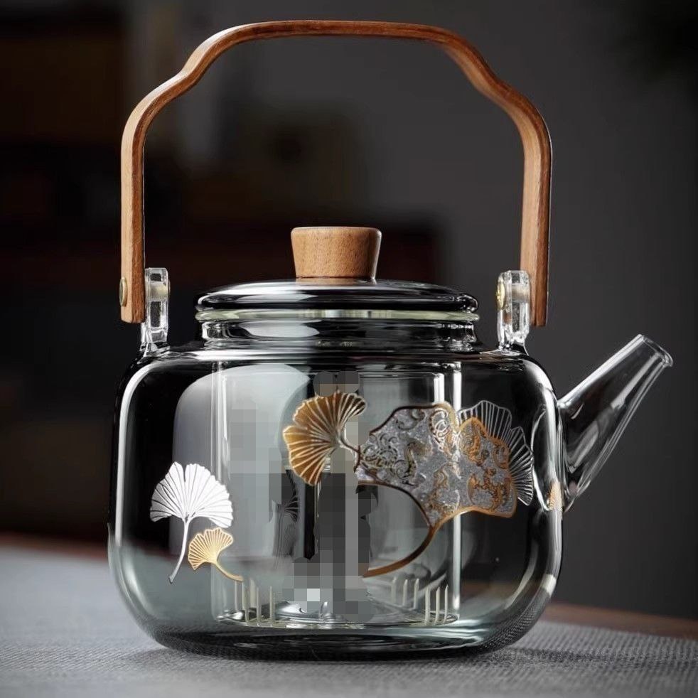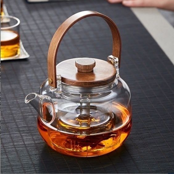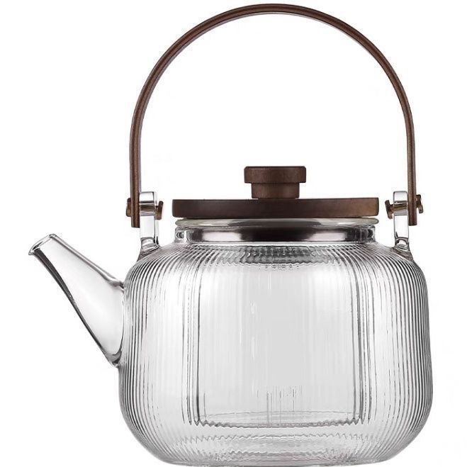 Стеклянный чайник с деревянной ручкой и фильтром (Объем 800 мл.)