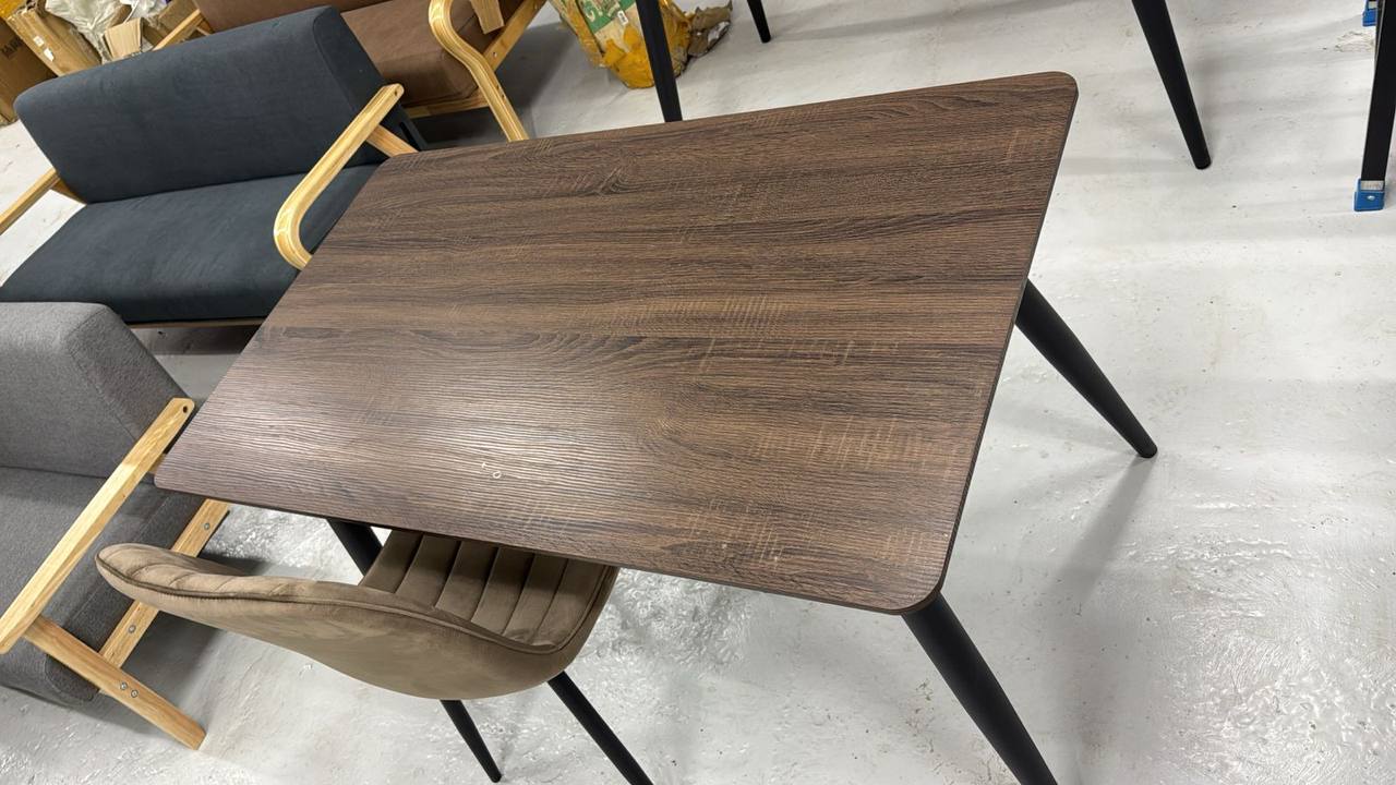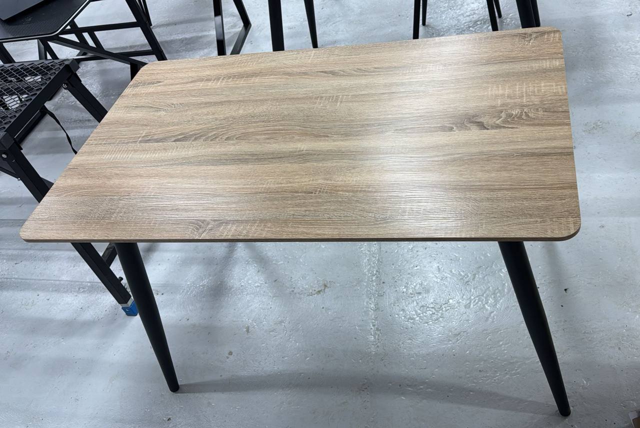 Ножки: Черные металлические ножки с геометрическими линиями придают столу современный и минималистичный вид.