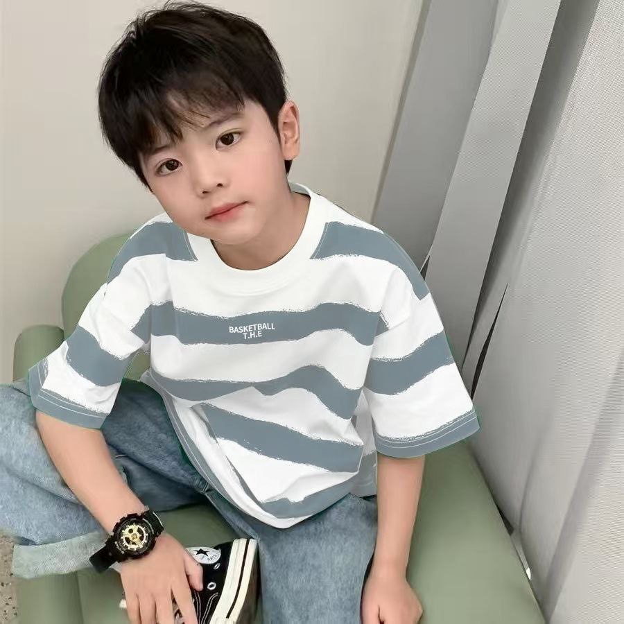 Детская футболка оверсайз в широкую полоску.
