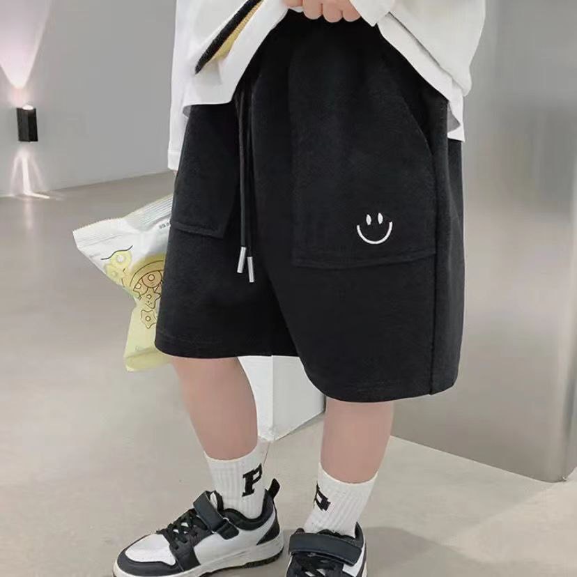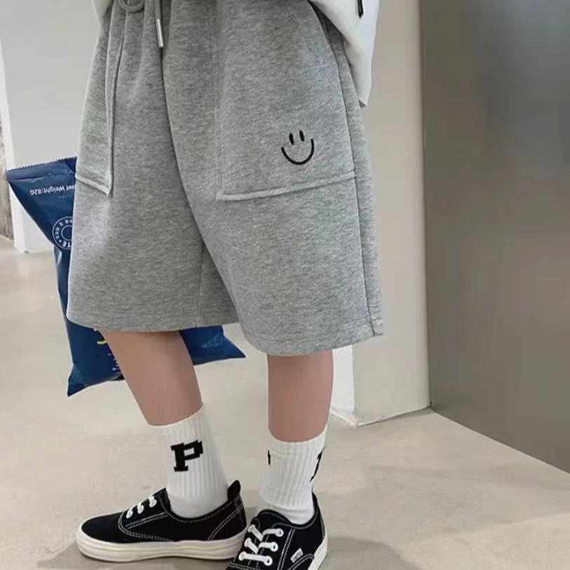 Детские трикотажные шорты-бермуды со шнурком и вышивкой «смайл».