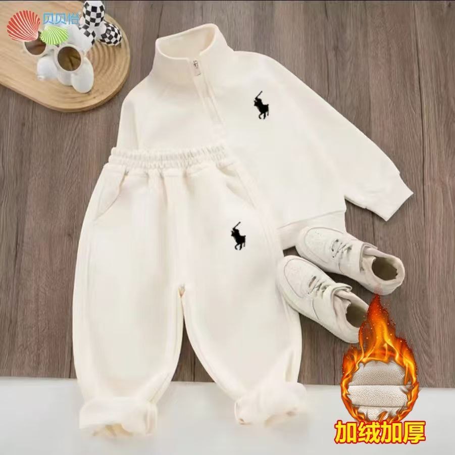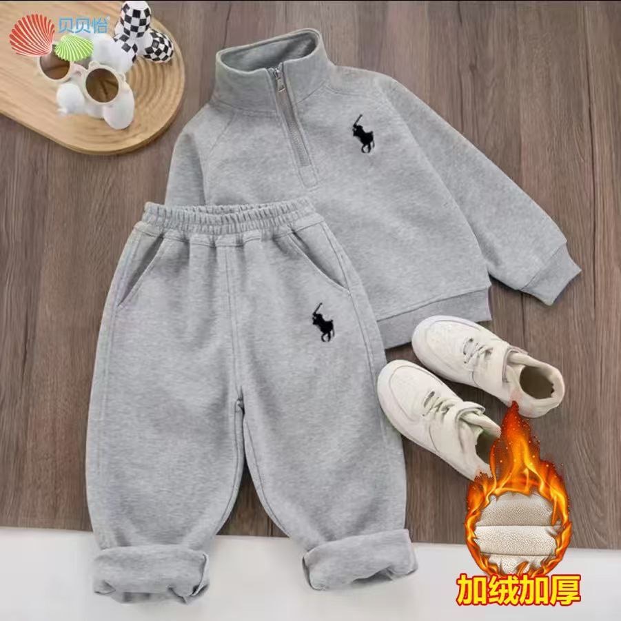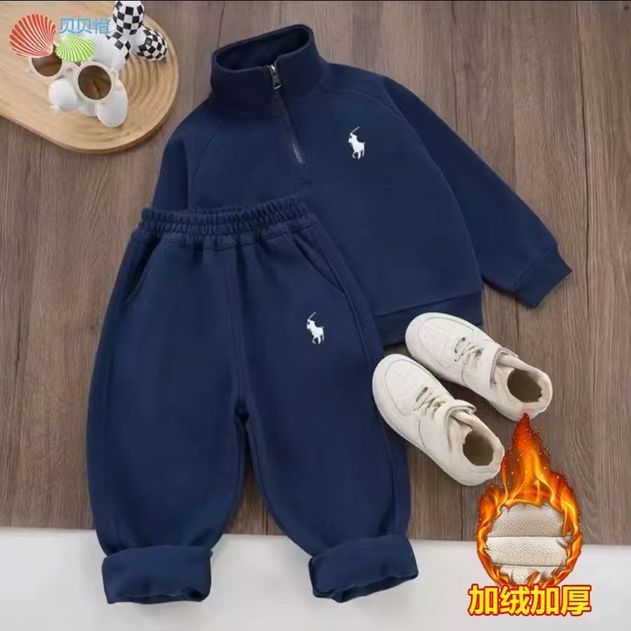 Утепленный детский спортивный костюм-двойка в классическом стиле для холодного времени года: