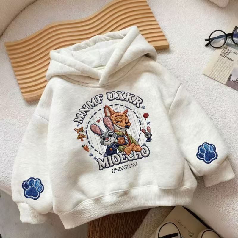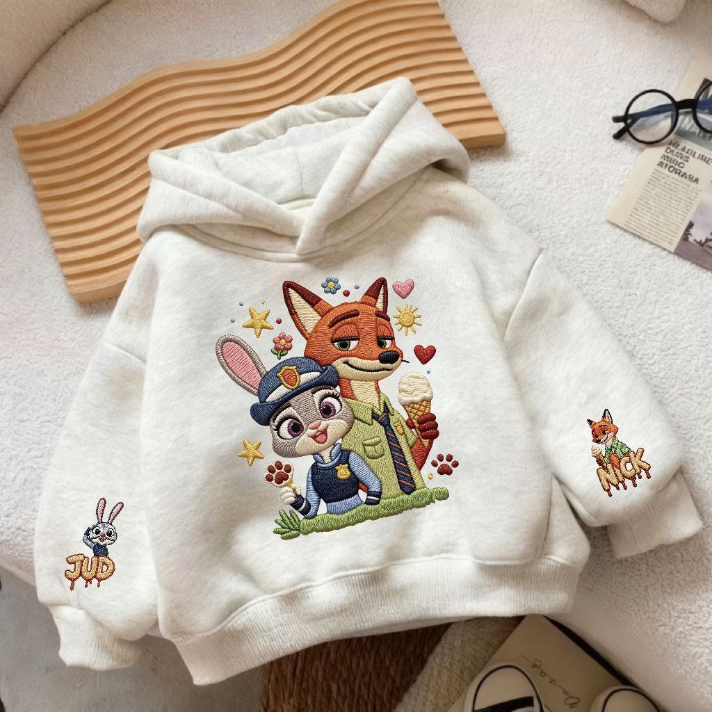 Детское худи оверсайз «Зверополис» — Стильная толстовка с объемной вышивкой.