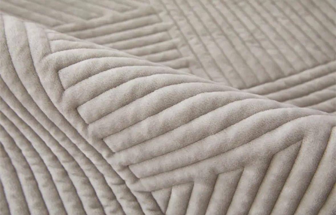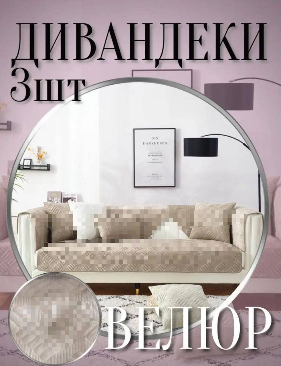 Комплект дивандеков из премиального велюра сочетает в себе современную геометрию и исключительную практичность. Поверхность украшена сложным 3D-плетением из пересекающихся линий, которое создает глубокую фактуру и визуально обновляет даже классическую мебель.
