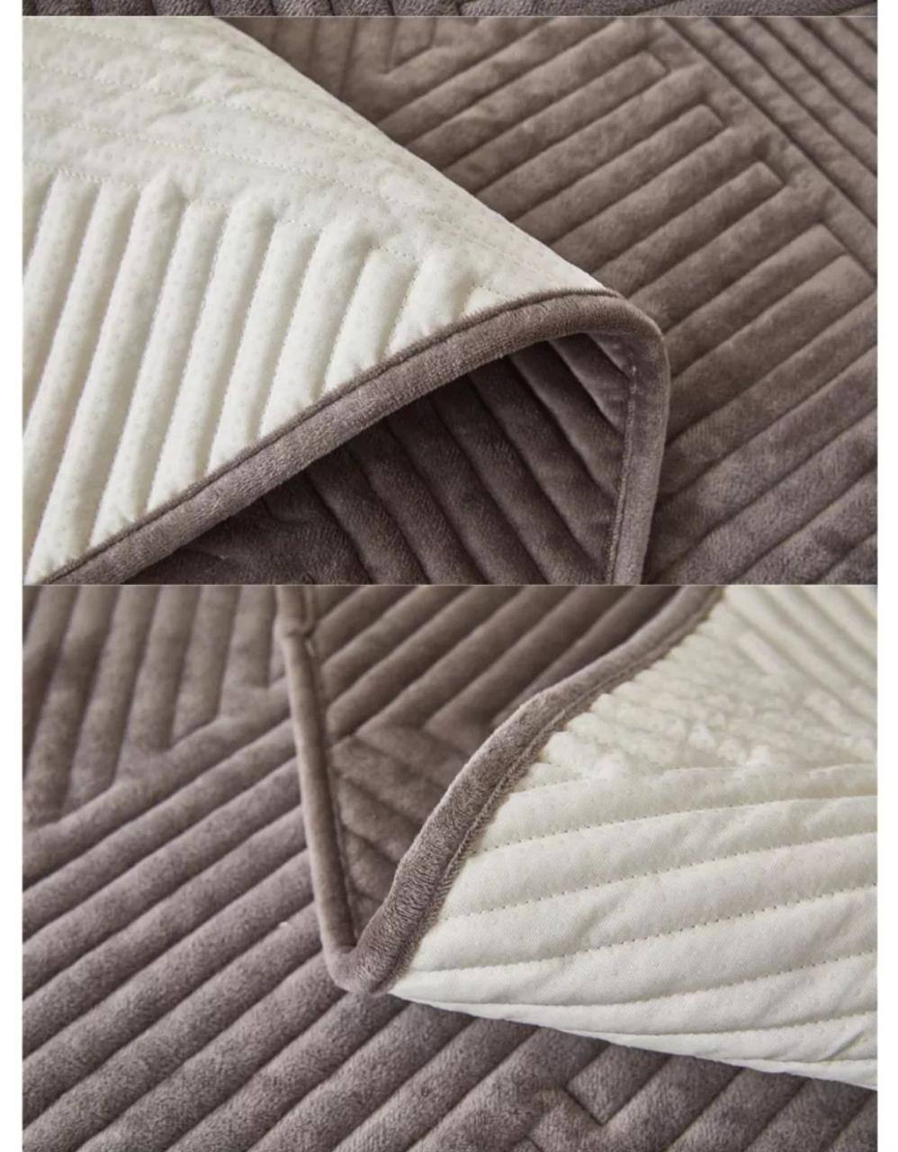 Плотная велюровая ткань очень нежная на ощупь, при этом она отличается высокой износостойкостью и не деформируется со временем. Изнаночная сторона дополнена специальным антискользящим покрытием с силиконовыми точками, что гарантирует идеальную посадку без смещений даже на кожаной обивке. Накидки надежно защищают диван от загрязнений и когтей домашних животных, легко чистятся и наполняют гостиную атмосферой премиального уюта.
