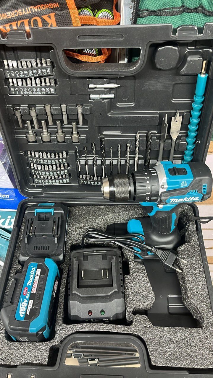 • Комплектация: Набор включает в себя все необходимое для работы: дрель-шуруповерт, аккумуляторы, зарядное устройство и множество полезных аксессуаров.