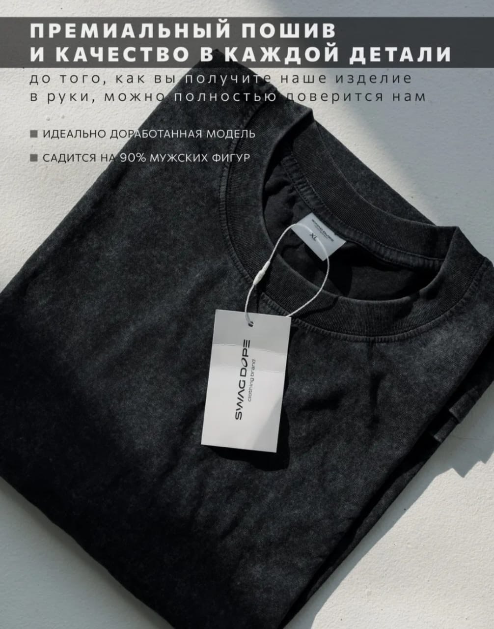Премиальная футболка в стиле оверсайз от бренда SWAG DOPE представляет собой идеальный баланс между брутальной эстетикой уличной моды и высочайшим качеством исполнения. Главной визуальной особенностью модели является эффект «кислотной стирки» (Acid Wash), который придает ткани уникальную винтажную фактуру с мягкими переходами оттенков. Такой метод обработки делает каждое изделие неповторимым, создавая вид дорогой аутентичной вещи с историей, которая при этом обладает мягкостью и комфортом нового изделия.