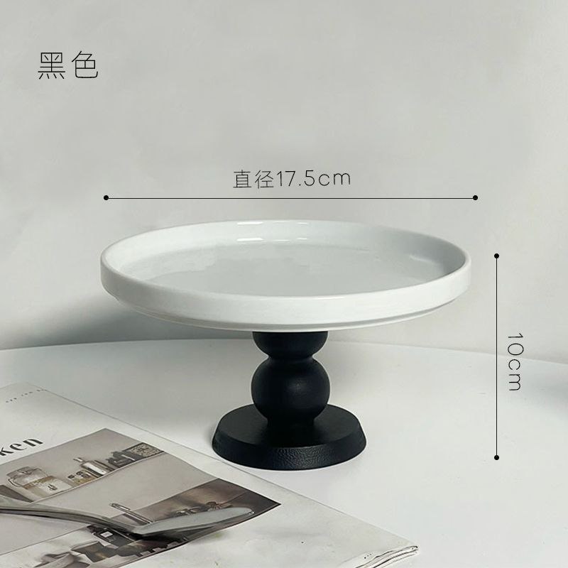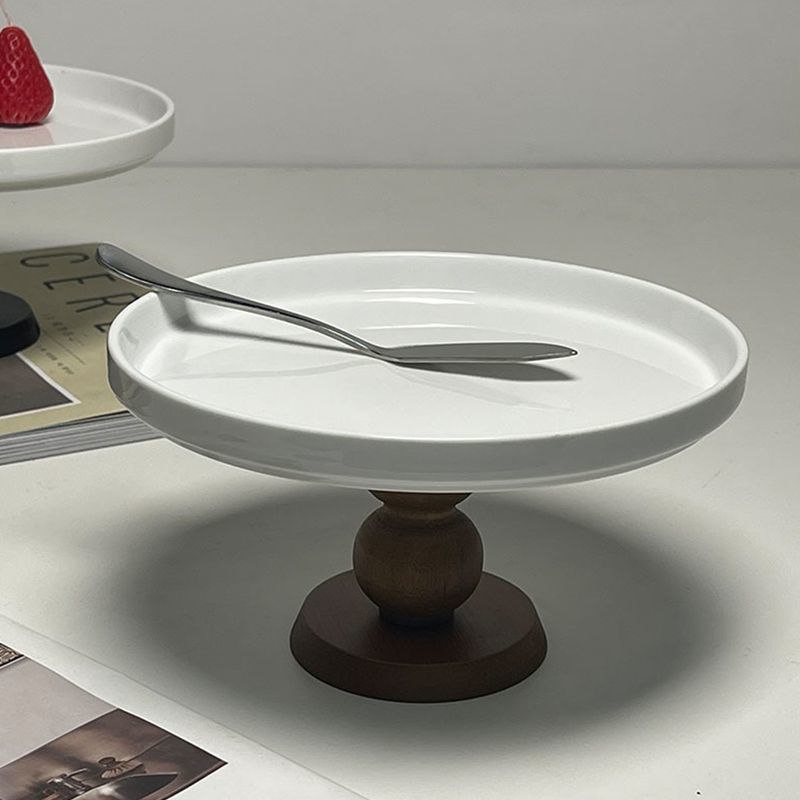 Элегантные керамические тарелки для тортов или сервировки десертов. Тарелка белого цвета с устойчивой ножкой из дерева. Представлены в двух вариантах цветового исполнения ножки: чёрная и коричневая.