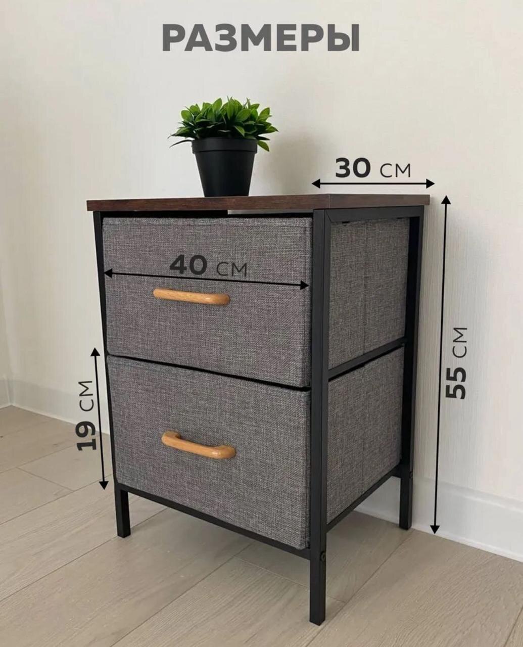 • Легкость в уходе: Тканевые ящики легко чистятся, а деревянную столешницу можно протереть влажной тряпкой.