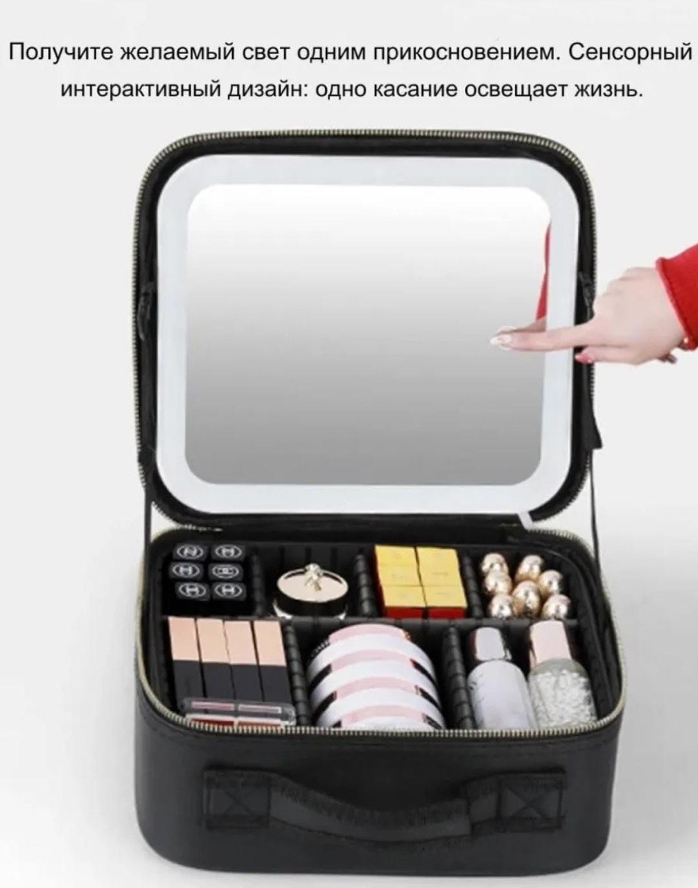 Косметичка с подсветкой — это не просто органайзер для косметики, а настоящее украшение вашего туалетного столика. Внутри неё спрятано 76 ярких лампочек, которые создают волшебное сияние, словно звезды на ночном небе.