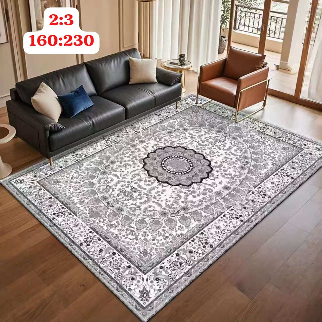 Размер ковра — 160×230 см, что делает его универсальным для просторных помещений. Он не только украшает комнату, но и выполняет практическую функцию: утепляет пол, снижает уровень шума и защищает покрытие от износа. Такой ковер станет настоящим украшением вашего дома, привнося в него тепло и комфорт.