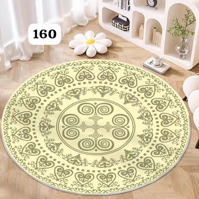 Диаметр ковра — около 160 см, что делает его идеальным для просторных помещений. Он не только украшает комнату, но и выполняет практическую функцию: утепляет пол, снижает уровень шума и защищает покрытие от износа. Такой ковер станет настоящей жемчужиной вашего интерьера, привнося в дом тепло и уют.
