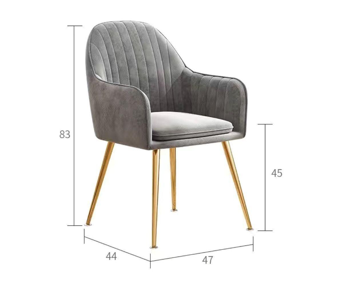 Элегантное кресло с мягкой обивкой и стильными золотистыми ножками станет прекрасным дополнением любого интерьера — от современного до классического. Высота спинки 83 см обеспечивает комфортную поддержку спины, а высота сиденья 45 см подходит для большинства стандартных столов и рабочих поверхностей.
