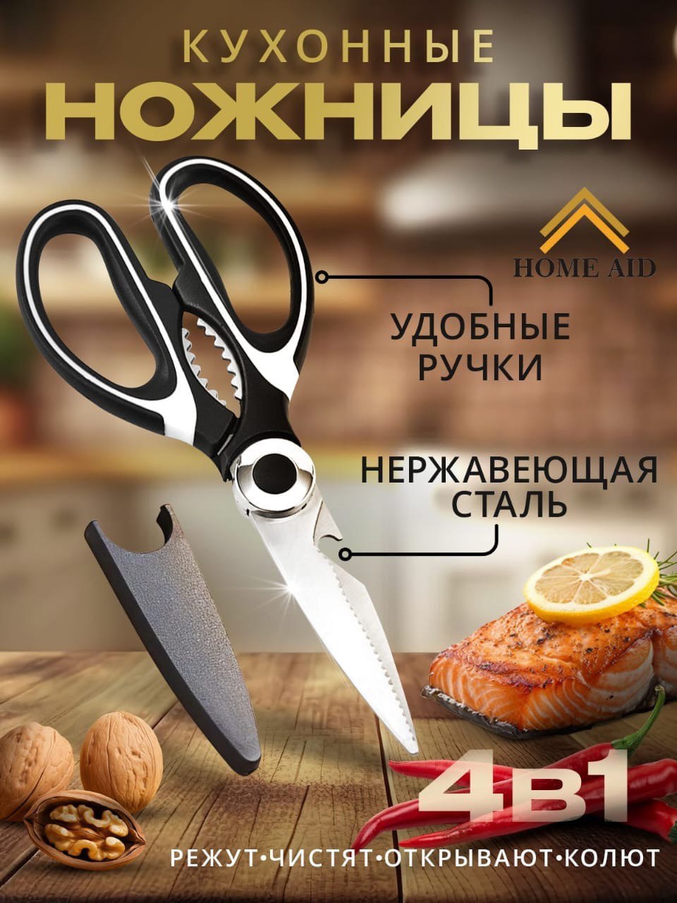 Оптимизируйте свою кухню с многофункциональными ножницами HOME AID — экономьте время и силы каждый день! 🍽️