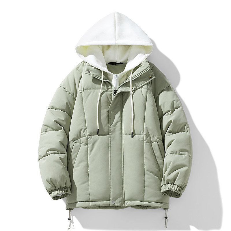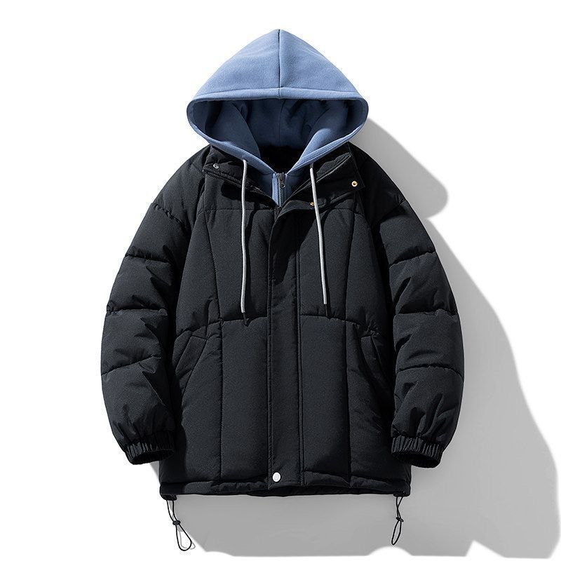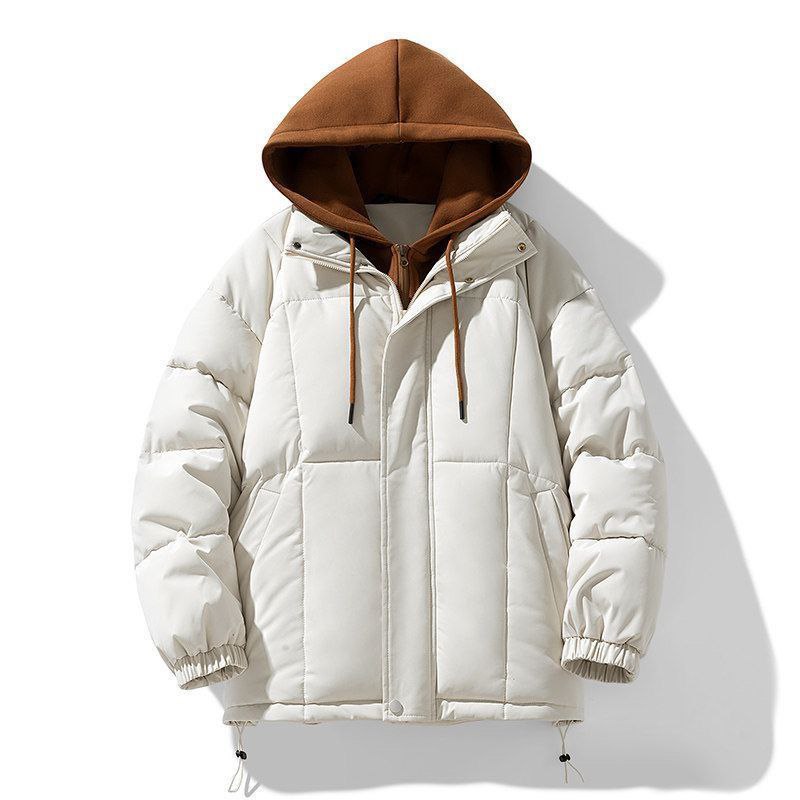 Куртка-пуховик в стиле оверсайз с капюшоном. Капюшон оснащён шнурками для регулировки, внутренняя часть капюшона — в светлом оттенке, что создаёт стильный контраст с основным цветом куртки. Модель отличается объёмным силуэтом, обеспечивающим свободу движений и дополнительную теплоизоляцию. Застёжка — молния. Практичная и удобная модель для холодной погоды, сочетает в себе комфорт и современный дизайн.