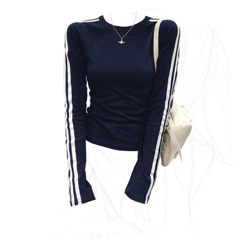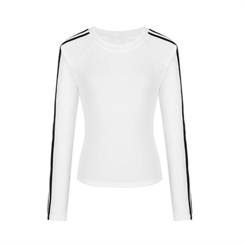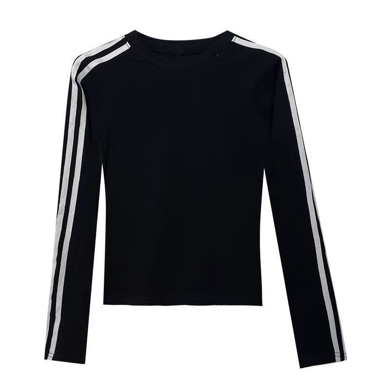 Лонгслив с длинными рукавами с контрастными полосами по рукавам. Модель приталенного кроя с округлым вырезом горловины. Спортивный стиль сочетается с лаконичностью — подойдёт как для активного отдыха, так и для повседневных образов.