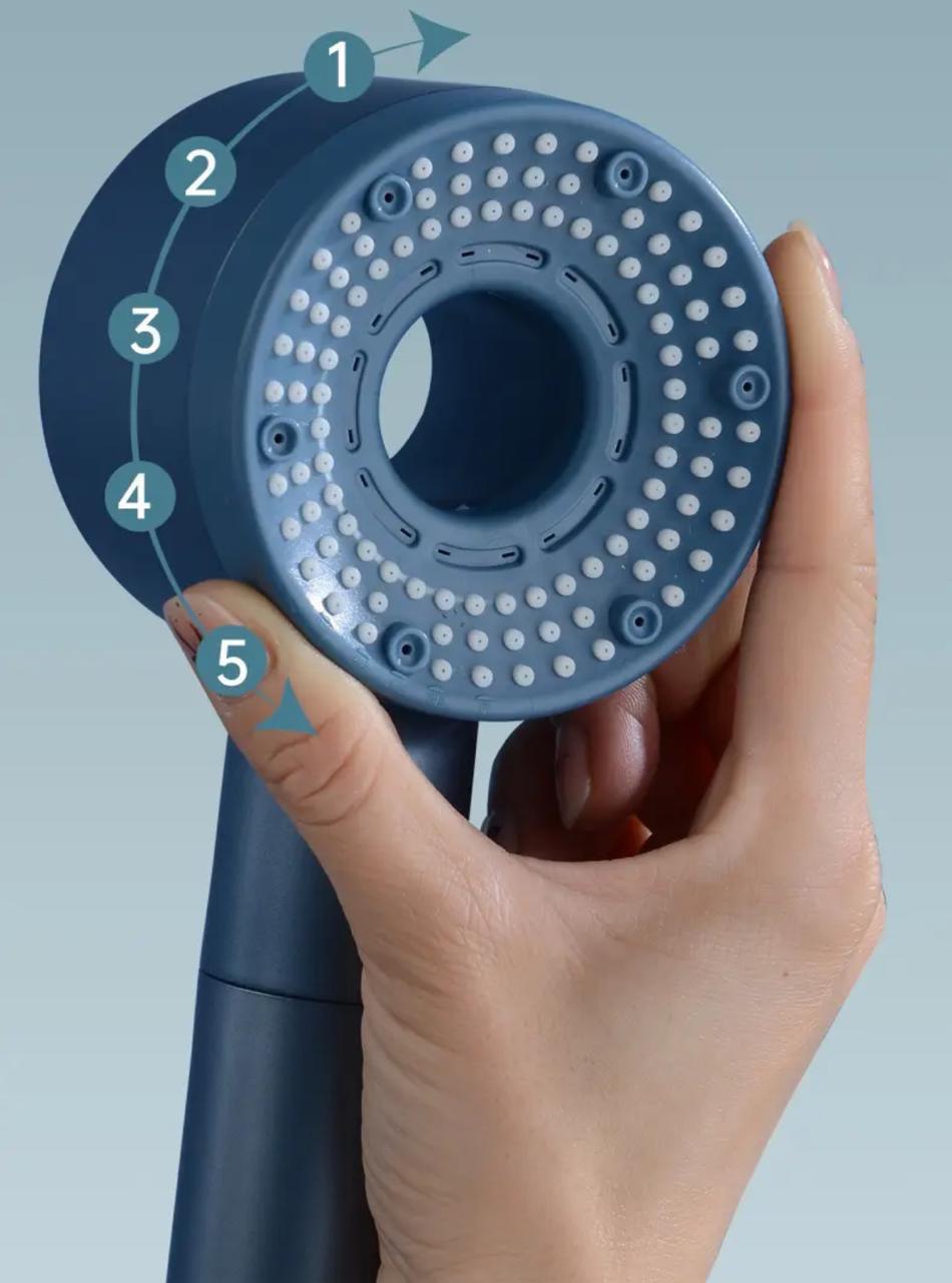 Главная особенность модели заключается в пяти уникальных режимах подачи воды, которые переключаются легким движением пальца. Вы можете выбрать мягкое мелкодисперсное распыление «Mist», создающее обволакивающее облако пара для бережного очищения лица, или мощную массажную струю, которая эффективно снимает мышечное напряжение и усталость. Благодаря специальной конструкции сопел, лейка работает как турболейка, значительно увеличивая давление воды даже при слабом напоре в системе, что превращает обычное мытье в бодрящий гидромассаж.
