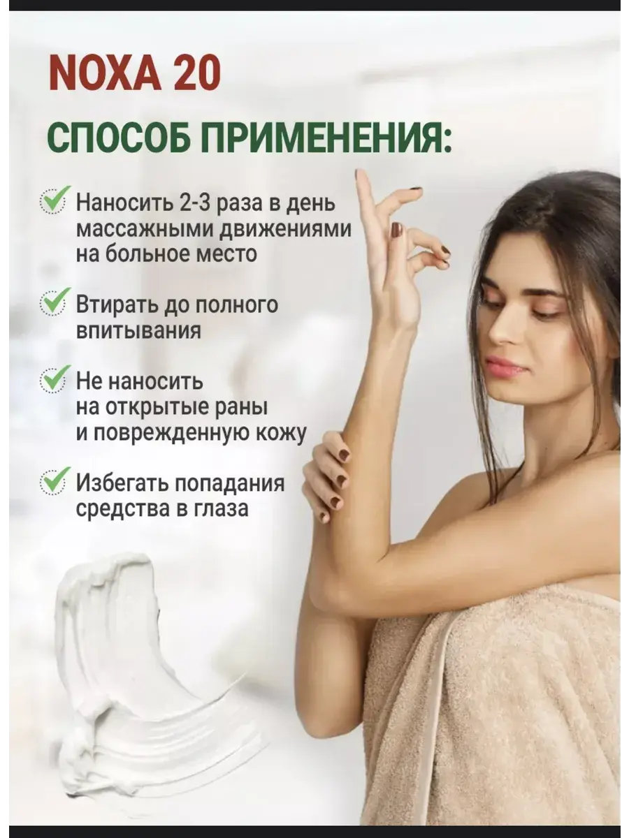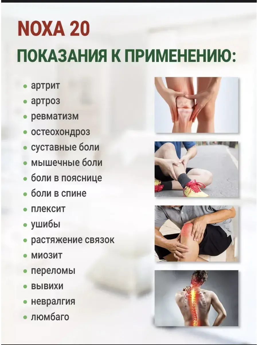 Мазь обезболивающая Noxa 20 - популярное средство известного бренда для лечения заболеваний опорно-двигательного аппарата и ликвидации последствий любых травм. Эффективно купирует воспаление и боль в суставах, снимает воспаление и отеки, улучшает местное кровообращение, устраняет мышечный спазм, оказывает анальгезирующее и укрепляющее действие. Препятствует разрушению хрящевой ткани, ускоряет восстановление поврежденных тканей при переломах, растяжениях и ушибах. Природные компоненты входящие в состав мази Noxa 20 повышают эластичность мышц и связок, устраняют застой лимфы, оказывают успокаивающее воздействие и ускоряют процессы регенерации, восстанавливают и заживляют соединительные ткани, снабжают клетки полезными витаминами и микроэлементами. Натуральная мазь для суставов укрепляет кости и сухожилия, способствует рассасыванию синяков, гематом и кровоподтеков. Помогает при люмбаго и воспалении седалищного нерва. Быстро возвращает легкость движений и подвижность суставов.
