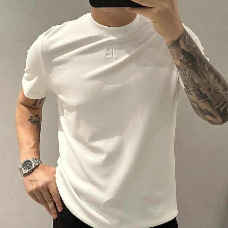 Мужская футболка с круглым вырезом. Отличается лаконичным дизайном — без принтов и лишних деталей, с небольшим логотипом на груди. Прямой крой обеспечивает комфортную посадку, не сковывает движения. Подходит для повседневной носки, сочетаема с джинсами, шортами и спортивными брюками. Практичный базовый элемент гардероба для тёплого времени года.