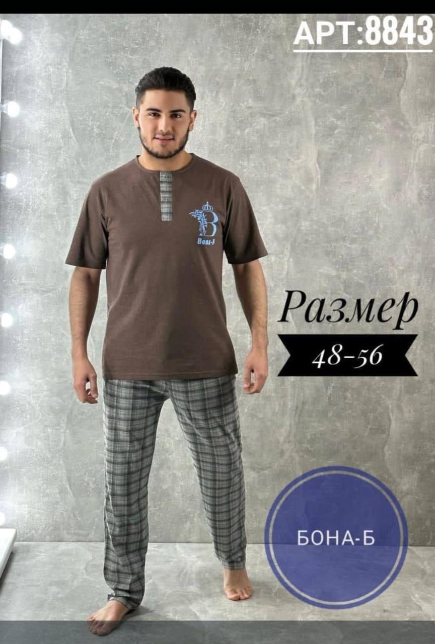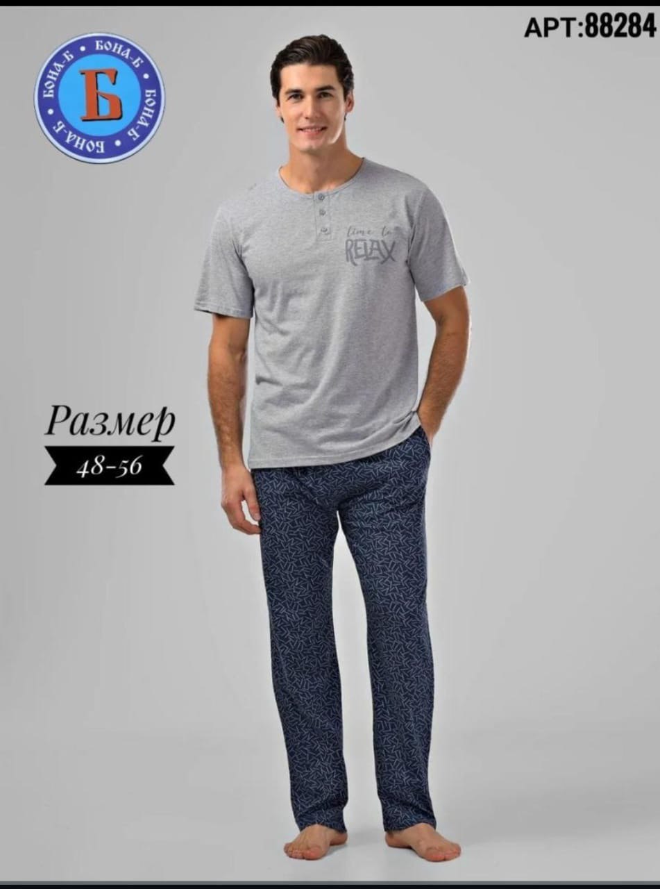 Мужской домашний комплект (пижама) — футболка с короткими рукавами и брюки.
