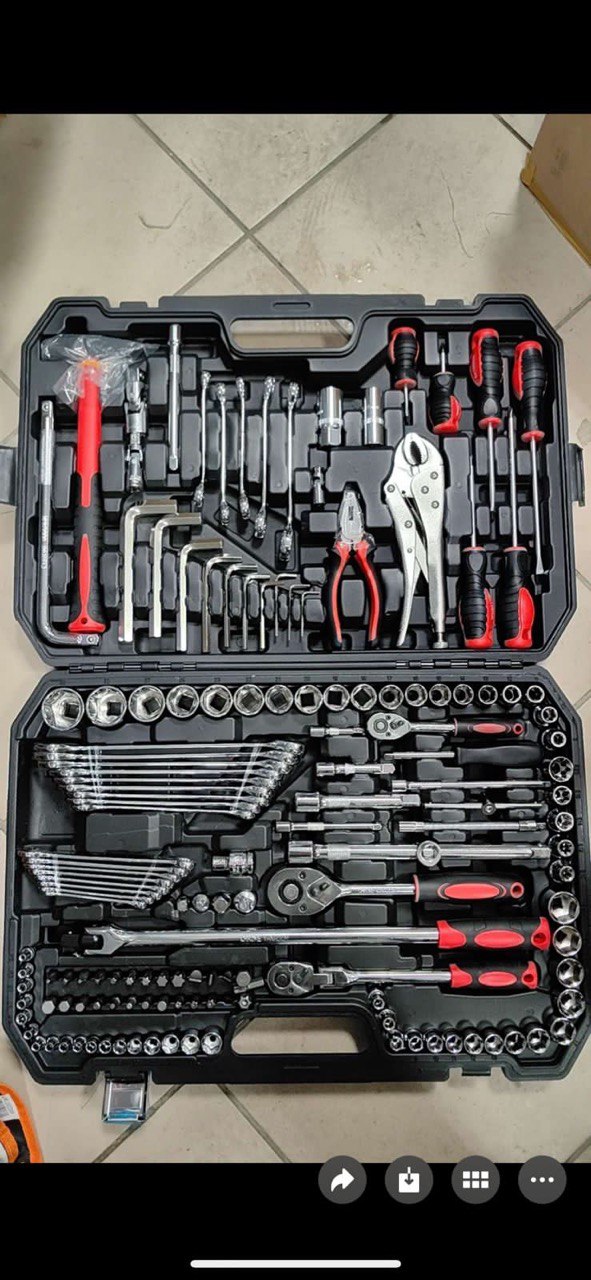 • Широкая комплектация: торцевые головки, трещотки, накидные ключи, шестигранники, отвертки, биты и принадлежности.