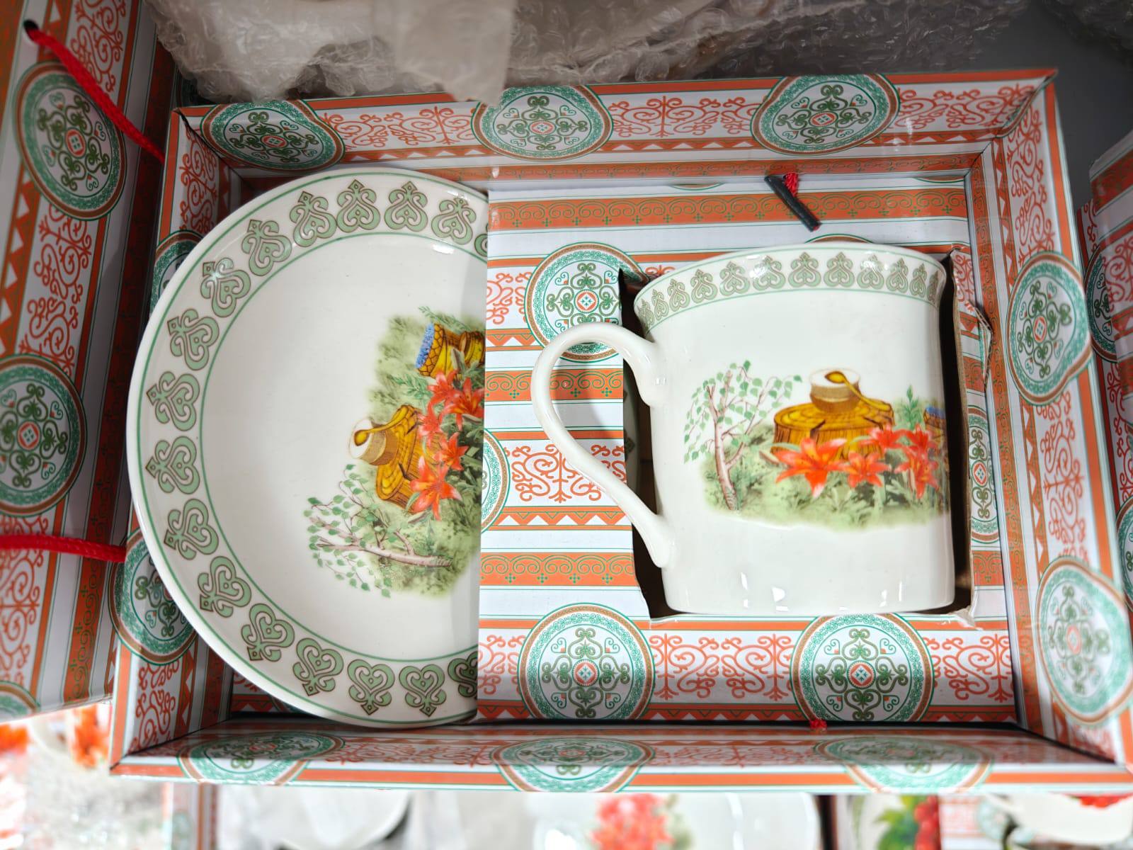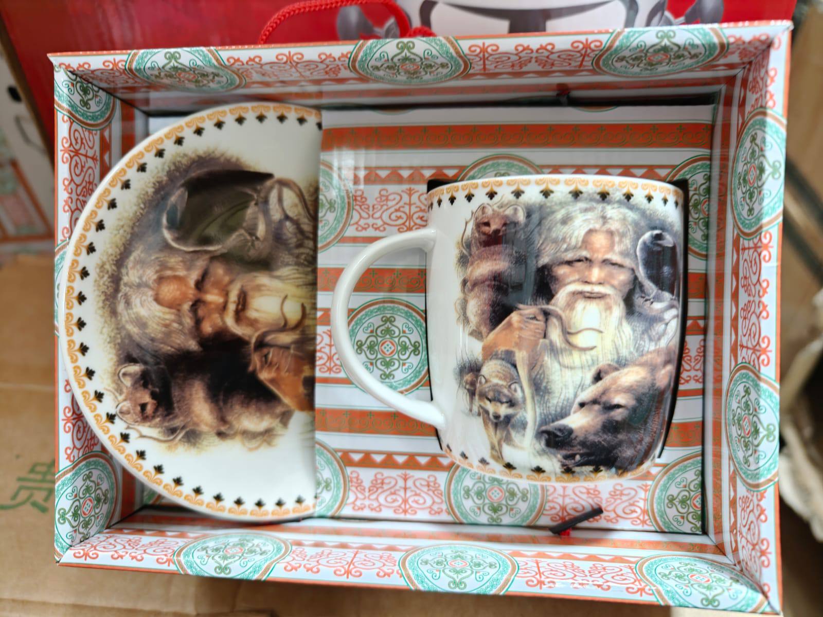 Набор из кружки и блюдца представляет собой настоящее произведение искусства, сочетающее в себе функциональность и глубокое культурное значение. Каждое изделие в наборе украшено уникальным, детально проработанным изображением, которое переносит нас в мир северных сказок и легенд, воплощая дух Якутии.
