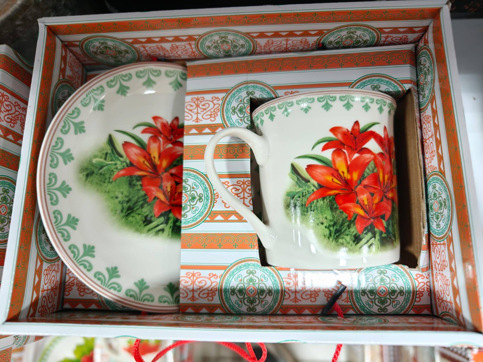 Кружка и блюдце выполнены из высококачественной керамики, что обеспечивает их прочность, долговечность и приятную тактильность. Поверхность покрыта глянцевой глазурью, которая не только защищает рисунок от выцветания и механических повреждений, но и придает изделиям изысканный блеск. По краю кружки и блюдца идет тонкий узор, выполненный в светлых тонах, который дополняет основное изображение, не перегружая композицию, а лишь подчеркивая ее. Такая отделка выполнена методом горячей деколи, что гарантирует стойкость рисунка.