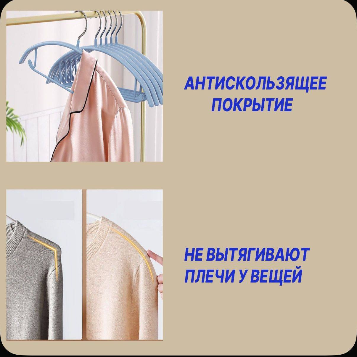 Набор из пяти вешалок нового поколения представляет собой выверенное инженерное решение для тех, кто стремится сохранить первозданный вид своего гардероба и оптимизировать пространство шкафа. В отличие от стандартных моделей с острыми углами, данные плечики обладают уникальной анатомической формой с плавным радиусом изгиба. Такой дизайн точно имитирует контуры человеческого плеча, что критически важно для хранения трикотажа, свитеров и деликатных тканей. Использование этих вешалок полностью исключает риск деформации волокон и появления характерных «пузырей» или вытянутых зон на рукавах, которые неизбежно возникают при использовании обычных тонких или угловатых конструкций.