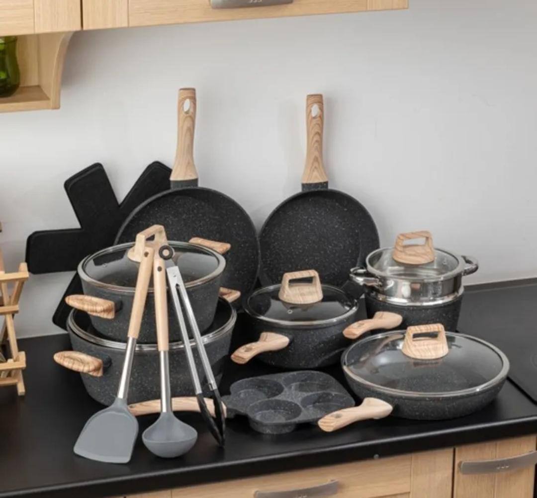 Откройте для себя мир гастрономического удовольствия с набором чугунной посуды. Черные кастрюли и сковороды с деревянными ручками — это не просто посуда, это символ качества и традиций.