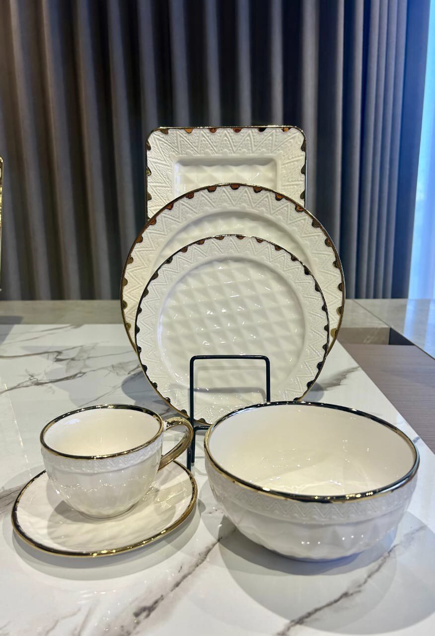 Почувствуйте себя аристократом за каждым приемом пищи с нашим эксклюзивным фарфоровым сервизом! Этот элегантный набор посуды, выполненный в безупречном белом цвете с изящной золотой отделкой, добавит нотку роскоши и утонченности в вашу сервировку стола.