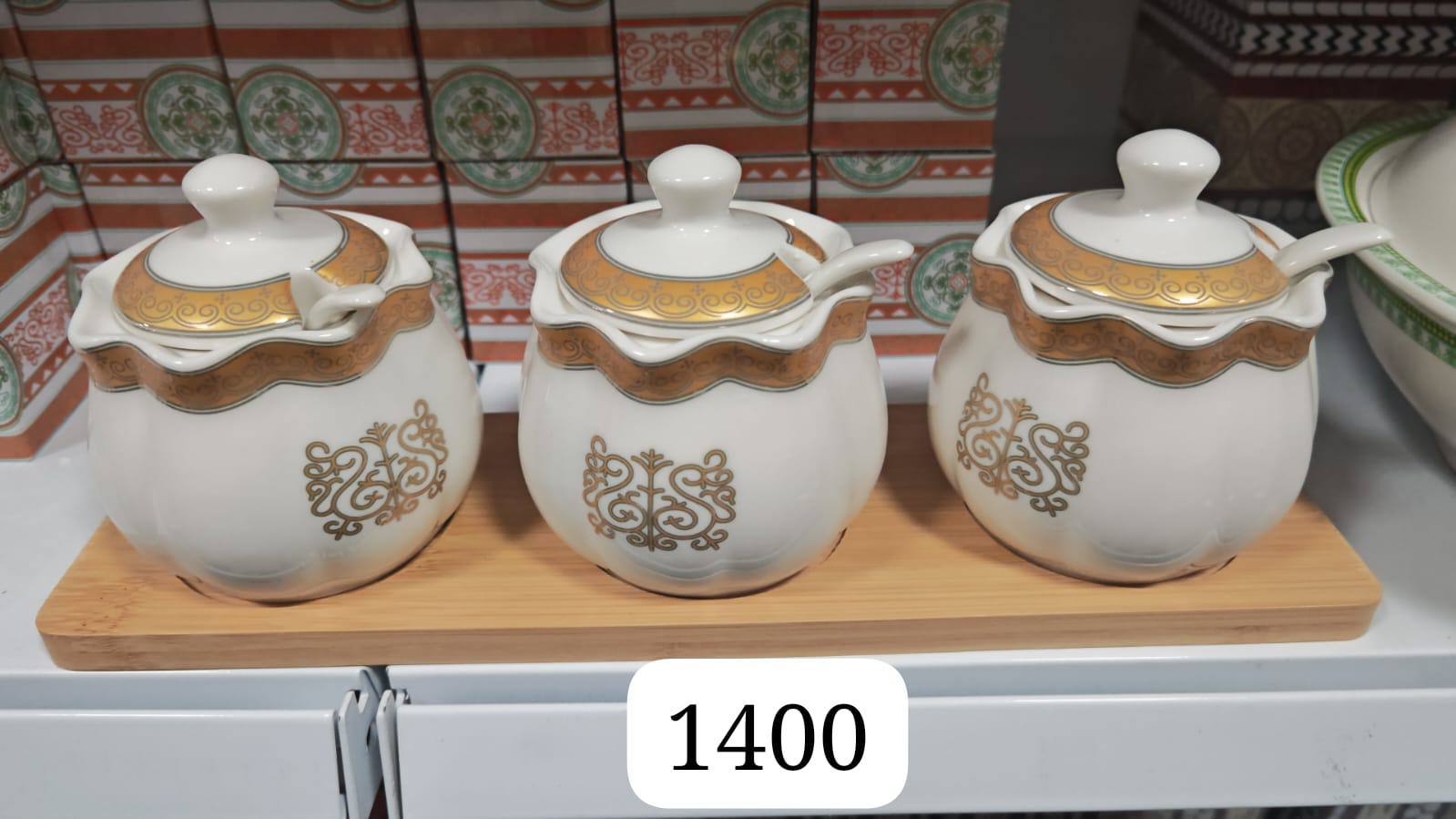 Аромат и вкус любимых специй, сахара или меда в этих изящных фарфоровых баночках станет еще насыщеннее. Деликатная золотая роспись и удобные ложечки превращают повседневное использование в маленькую церемонию. Комплект из трех баночек на бамбуковой подставке добавит шарма вашей кухне и станет прекрасным подарком для ценителей красивых вещей.