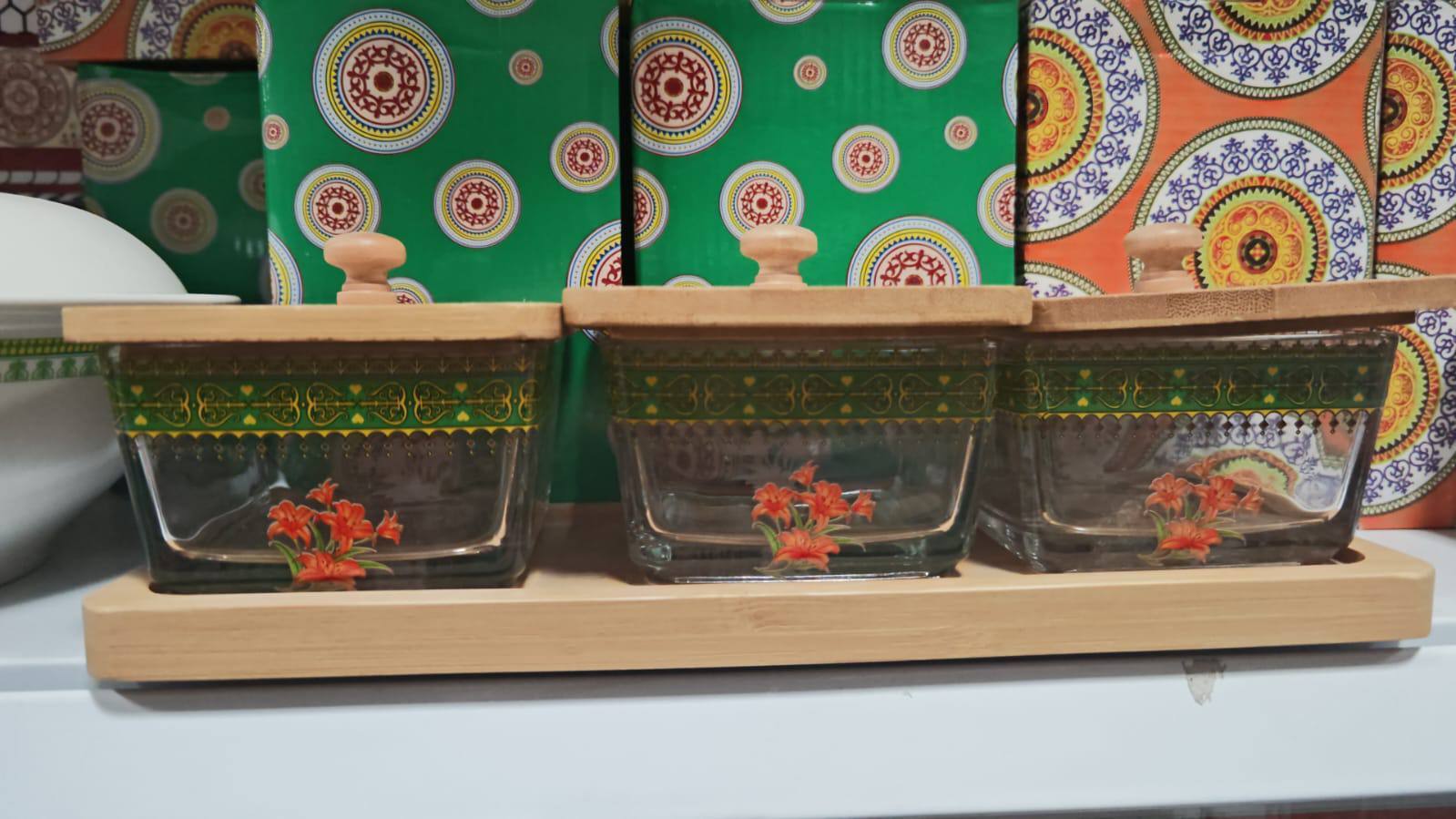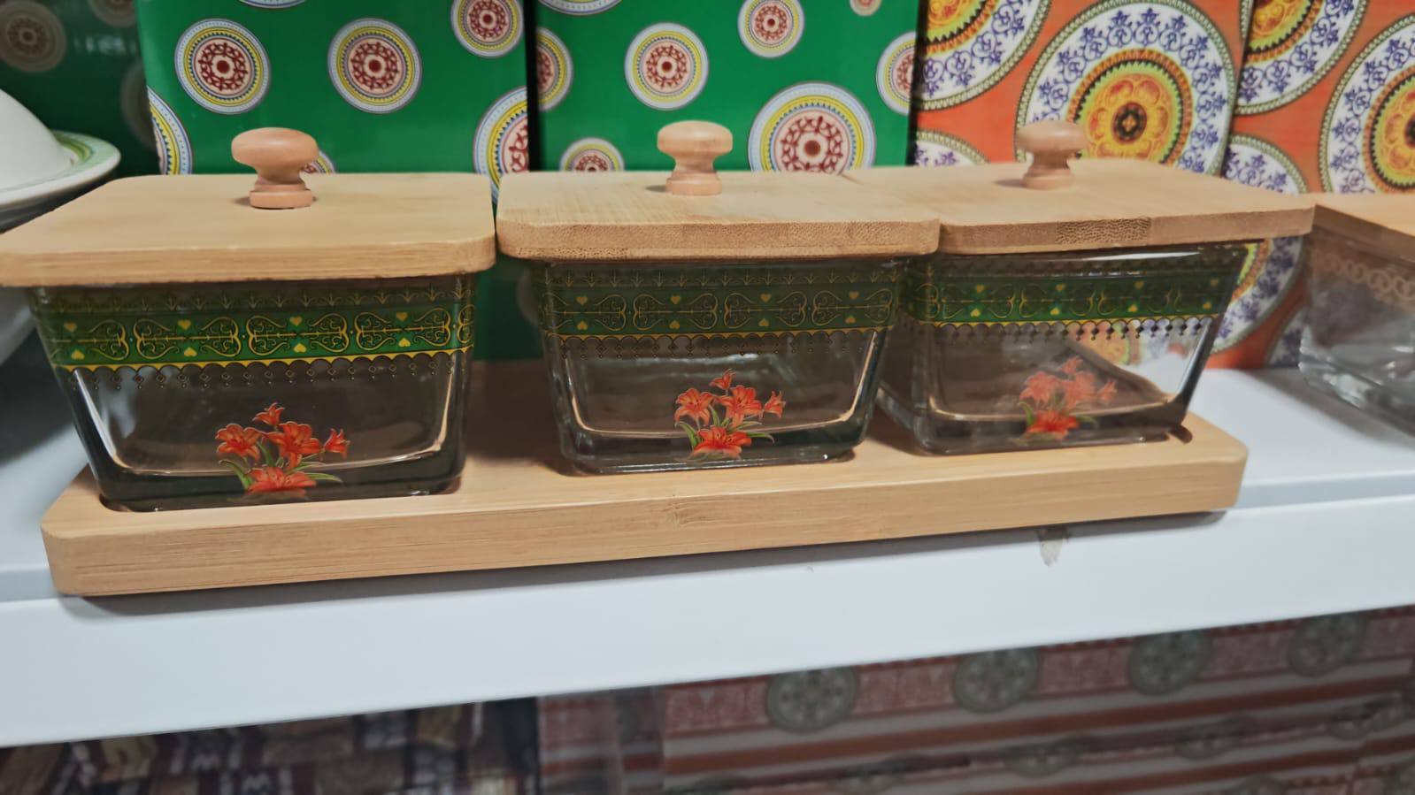 Представьте себе: солнечный свет, проникающий сквозь граненые стенки этих изящных емкостей, играет бликами на сочных цветах ручной росписи. Трио баночек, словно драгоценные ларцы, хранят в себе не только специи или сладости, но и частичку душевного тепла. Тепла, которое рождается в доме, где ценят красоту в каждом мгновении. Деревянные крышечки, теплые и приятные на ощупь, словно приглашают заглянуть внутрь, а поднос из натурального бамбука объединяет этот ансамбль в единую симфонию стиля и функциональности. Позвольте этим очаровательным деталям преобразить вашу кухню и добавить нотку восточной сказки в вашу повседневную жизнь.