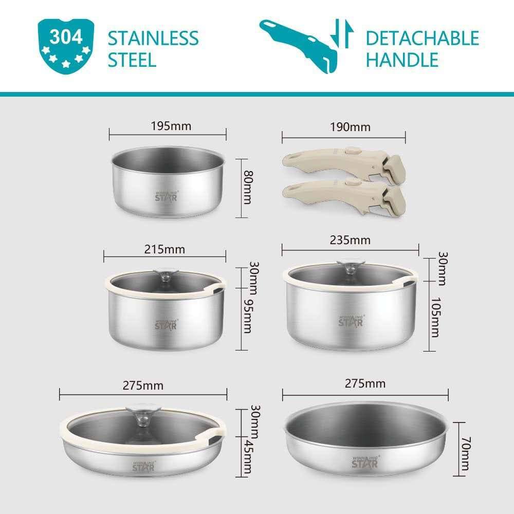 Набор посуды из нержавеющей стали со съёмными ручками: практичность в каждой детали!