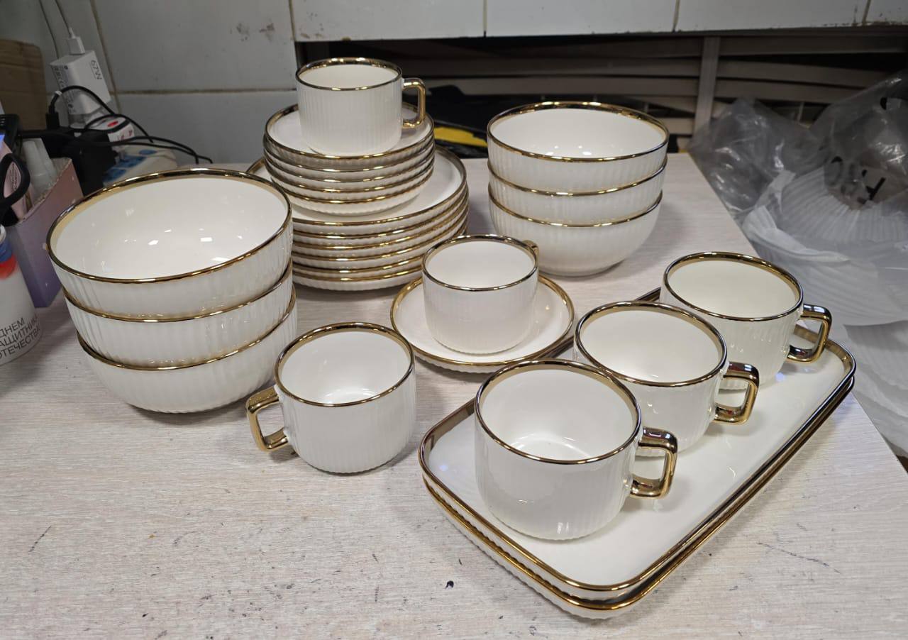 Элегантный чайно-столовый сервиз с золотой окантовкой — воплощение роскоши на вашем столе!