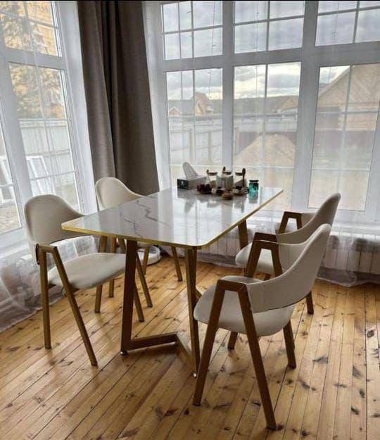 Обновите интерьер кухни или столовой с помощью элегантного набора мебели! Композиция из стола и четырёх стульев сочетает в себе современный дизайн и практичность — идеальное решение для тех, кто ценит комфорт без компромиссов.
