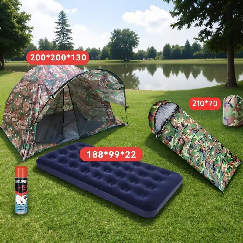 Полноценный походный набор — идеальное решение «всё в одном» для комфортной ночевки на свежем воздухе. Центром комплекта является вместительная двухместная палатка с надежной вентиляцией, которая дополнена теплым спальным мешком анатомической формы. Для максимального удобства предусмотрен прочный надувной матрас с бархатистым флокированным покрытием, обеспечивающим мягкость и отичную изоляцию от холодной земли.