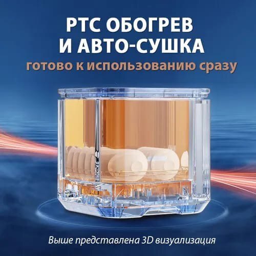 • PTC обогрев и авто-сушка: Горячий воздух быстро высушивает посуду, предотвращая образование разводов и налета.