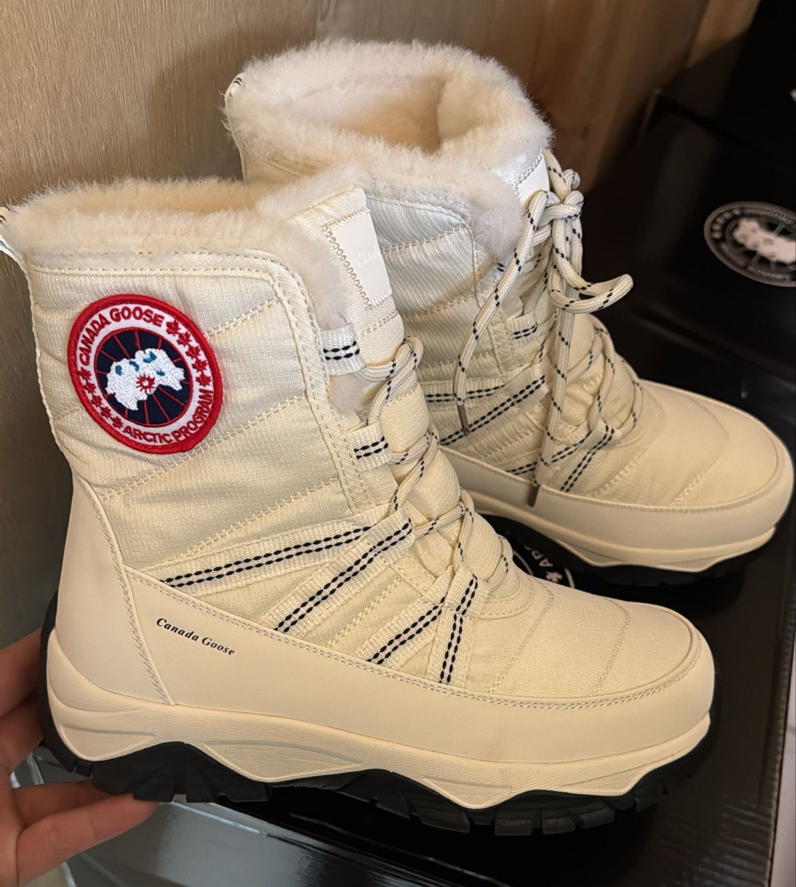 Эти ботинки Canada Goose станут вашим надежным спутником зимой, обеспечивая комфорт и защиту в любых условиях. Они идеально подходят как для повседневной носки в городе, так и для активного отдыха на природе. Выбирайте качество и стиль — выбирайте Canada Goose!