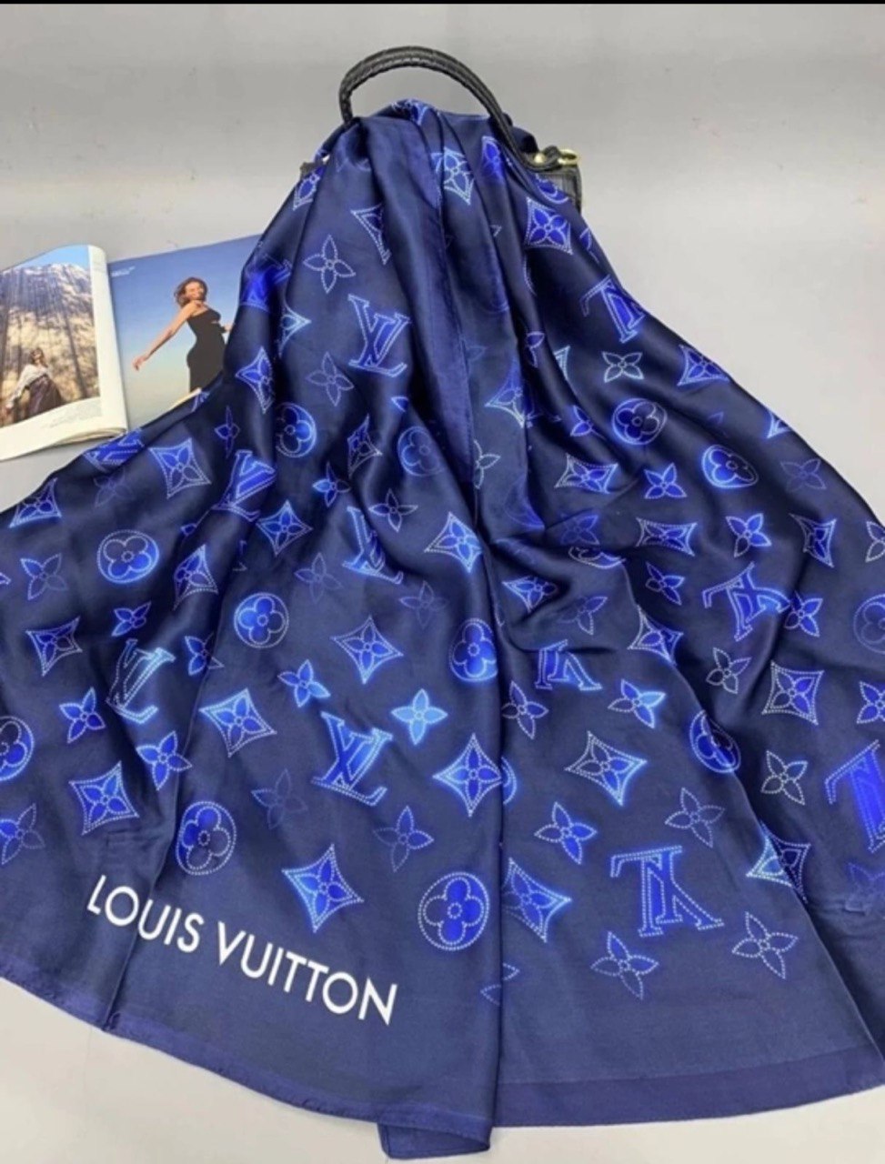 В дизайне палантина переплетаются два культовых элемента бренда: узнаваемый монограммный узор LV и мотивы, вдохновленные историческими багажными изделиями марки. Это сочетание создает ощущение глубокого погружения в историю Дома Louis Vuitton, где каждая деталь наполнена смыслом и отсылает к наследию роскоши и мастерства. Разнообразие цветовых решений — от классического темно-синего с неоновыми акцентами до богатого коньячного с золотистыми элементами — позволяет выбрать палантин, идеально гармонирующий с любым гардеробом и случаем.