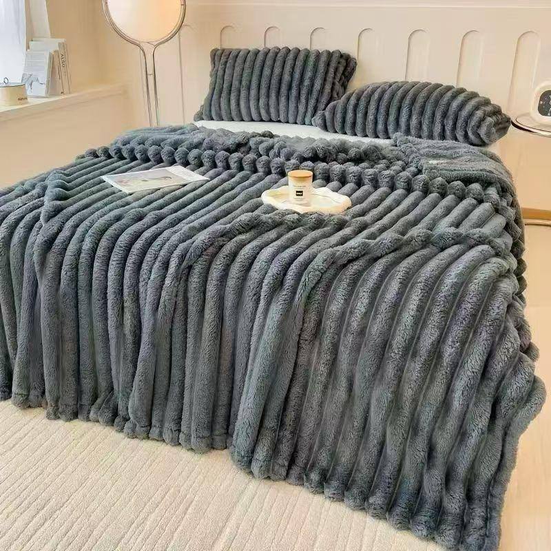 Роскошный плед из фланели станет воплощением уюта и стиля в вашей спальне. Уникальная 3D-фактура с широкими рельефными полосами не только эффектно смотрится в интерьере, но и дарит невероятные тактильные ощущения, сравнимые с нежным облаком. Плотный, густой ворс отлично удерживает тепло, при этом материал остается легким и «дышащим», что гарантирует комфортный отдых в любое время года.