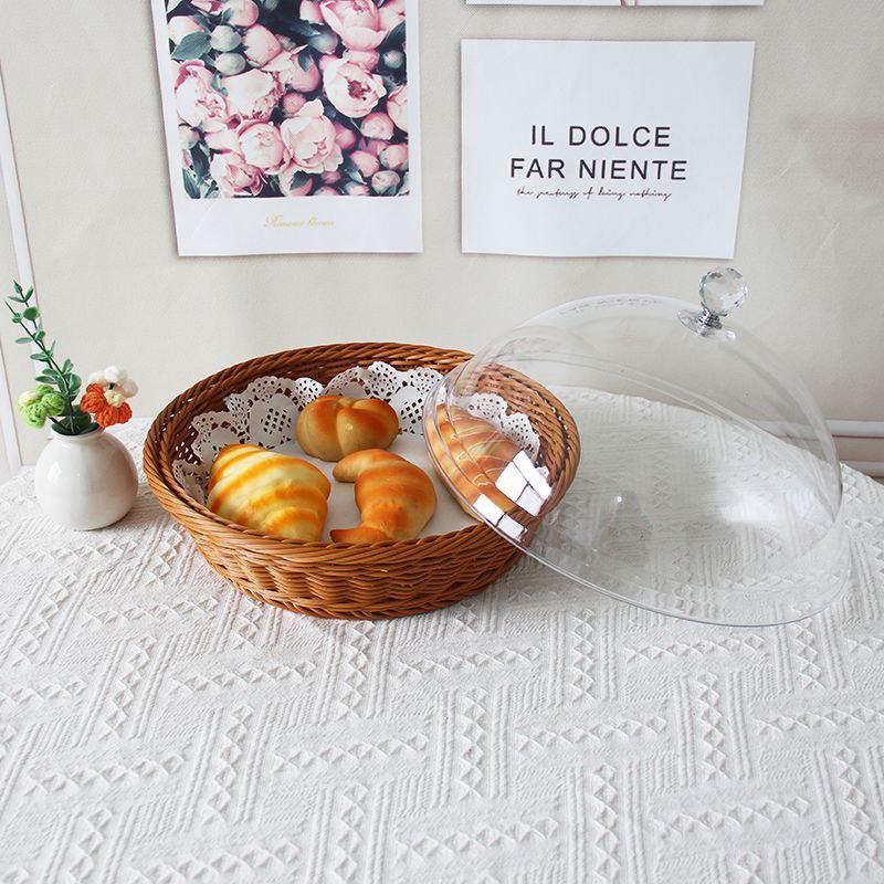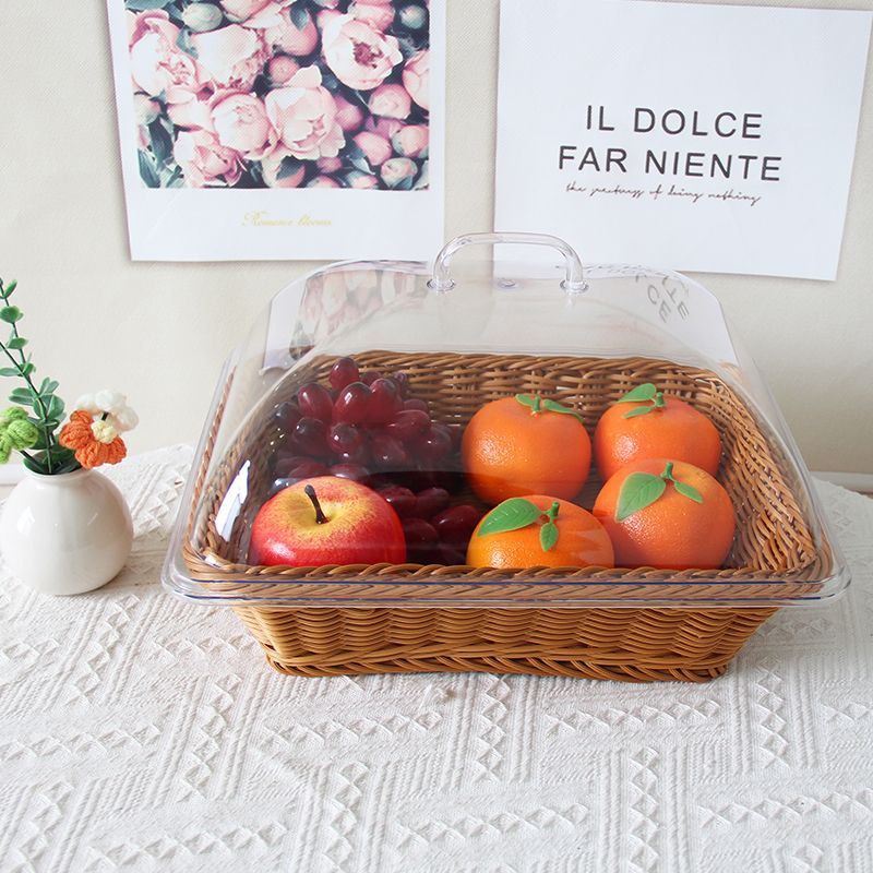 Практичные корзины из плетёного материала с прозрачными акриловыми крышками. Представлены в двух формах: круглая и прямоугольная. Подходят для хранения и сервировки фруктов, выпечки, хлеба и других продуктов. Натуральный плетёный корпус сочетается с лаконичными крышками, придавая изделию стильный и уютный вид. Удобны для использования на кухне, столе или во время пикника.