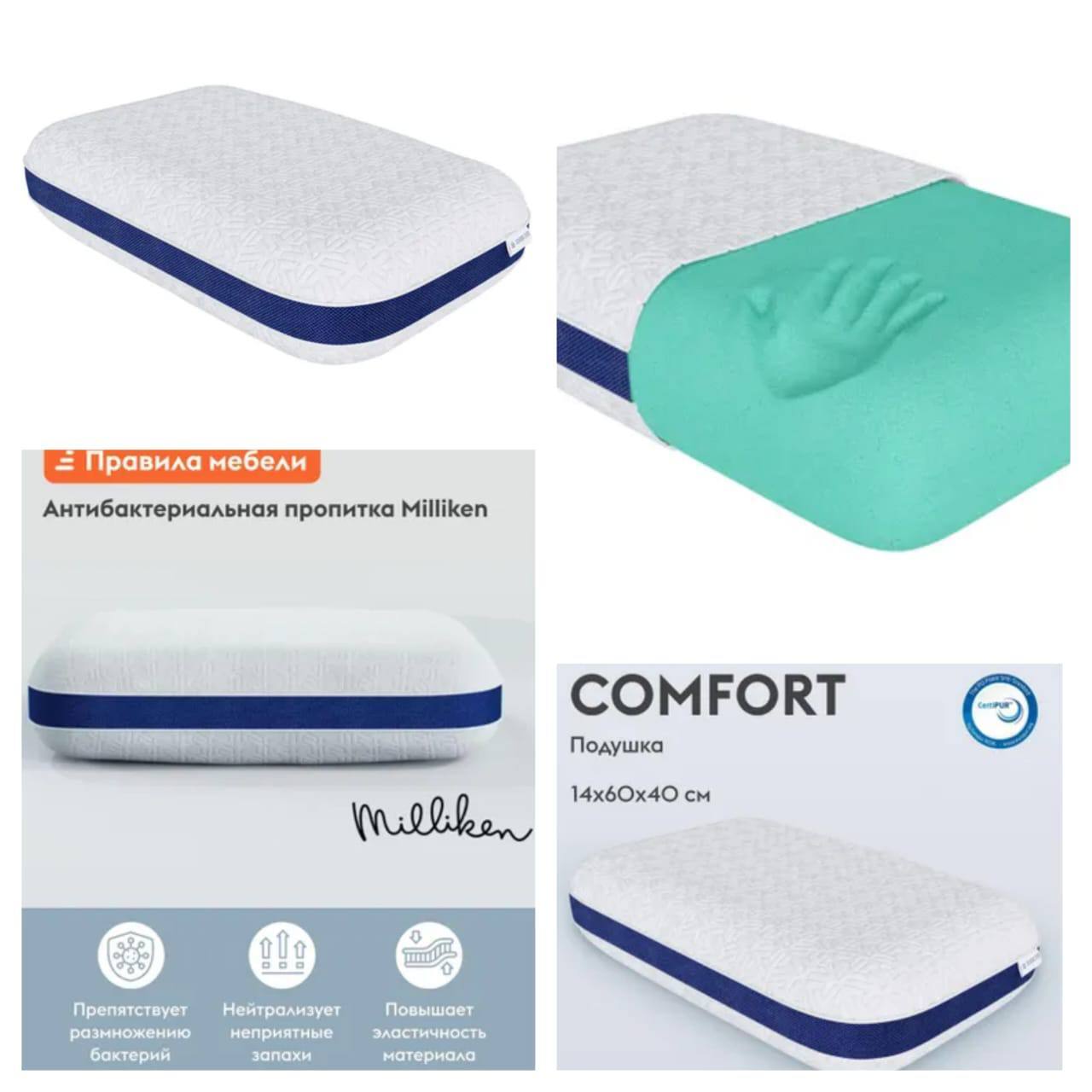 • Антибактериальная Защита Milliken: Подушка обработана специальной антибактериальной пропиткой Milliken, которая препятствует размножению бактерий и микроорганизмов. Это обеспечивает гигиеничность и свежесть подушки, даже при длительном использовании.