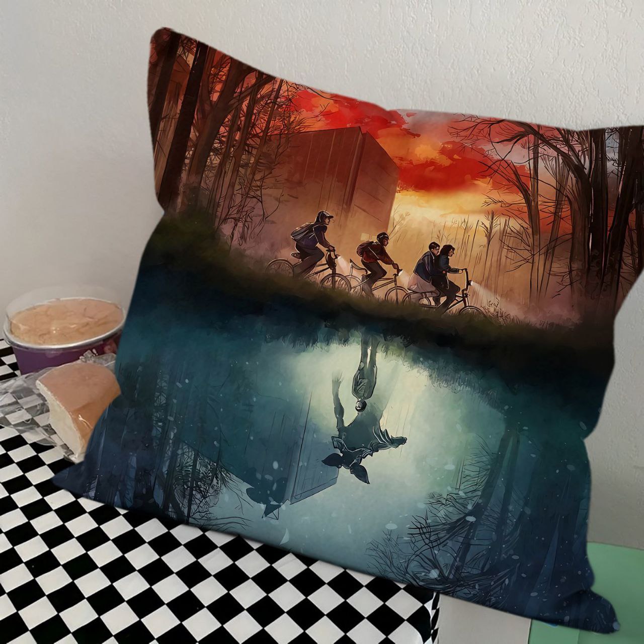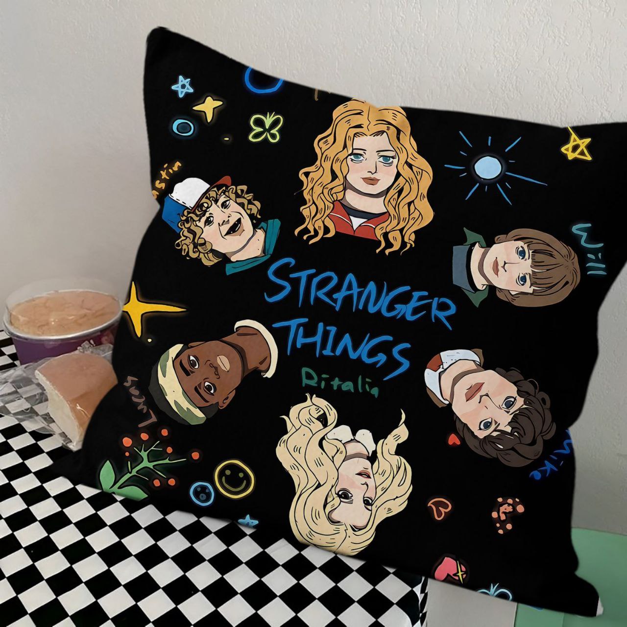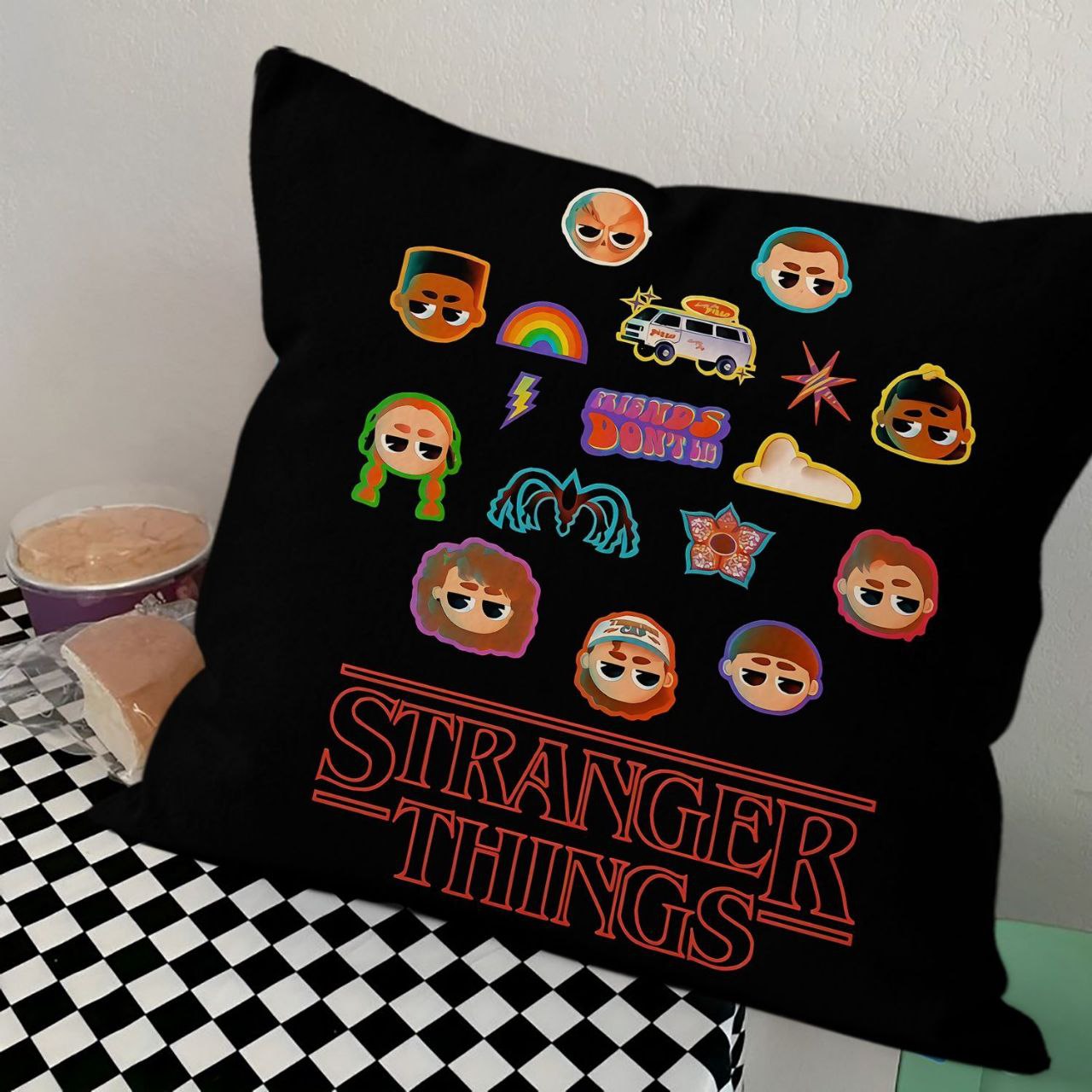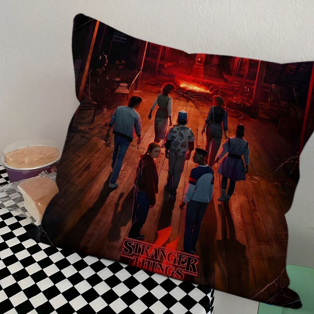 Квадратная интерьерная подушка с ярким тематическим принтом, вдохновленным популярным сериалом. Изделие предназначено для декорирования жилых зон, детских комнат или тематических пространств. Поверхность выполнена из мягкой, приятной на ощупь ткани, обеспечивающей четкую передачу цветов. Внутренний наполнитель придает изделию объем и упругость, позволяя сохранять форму при использовании. Печать устойчива к внешним воздействиям и выцветанию.