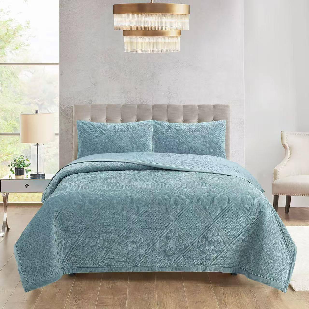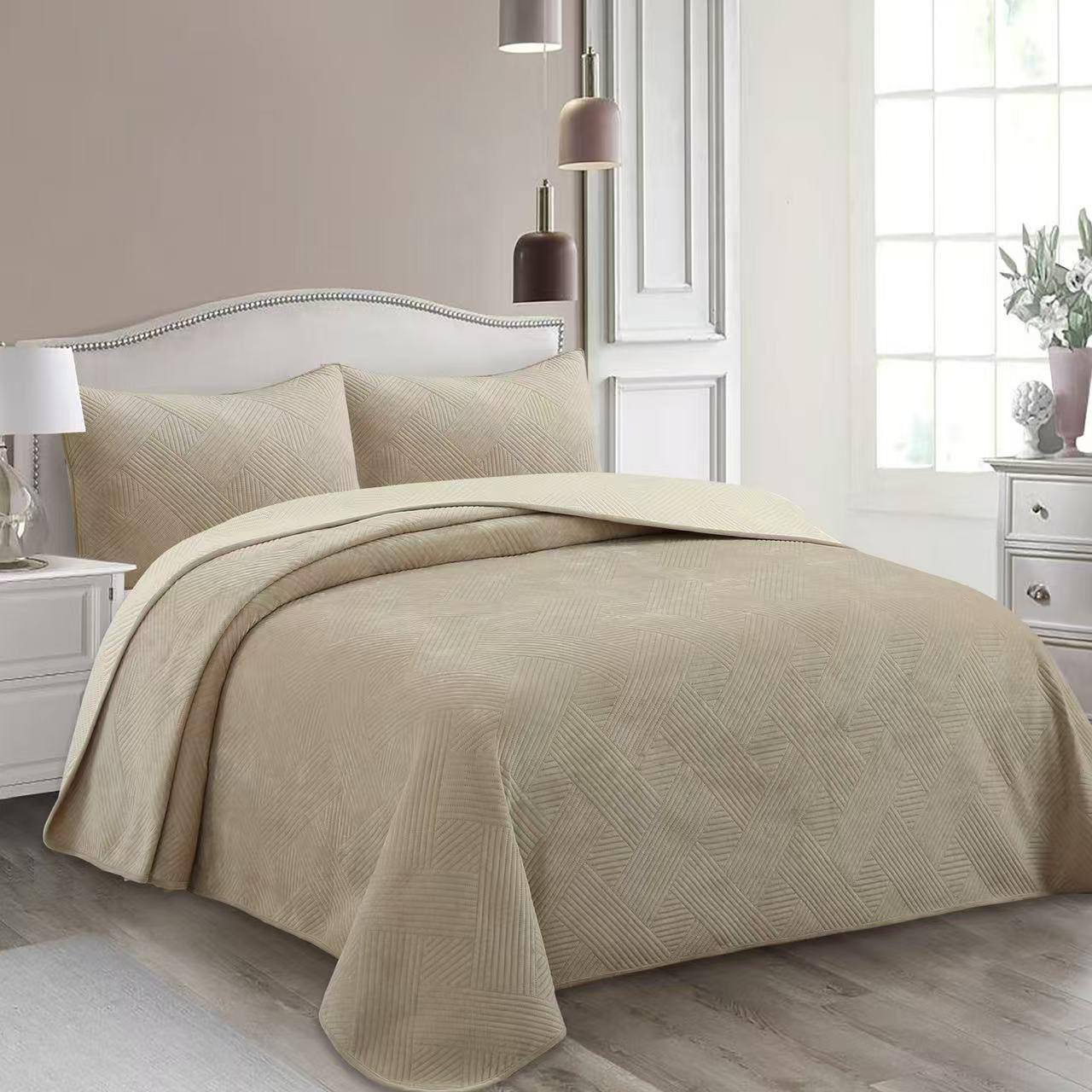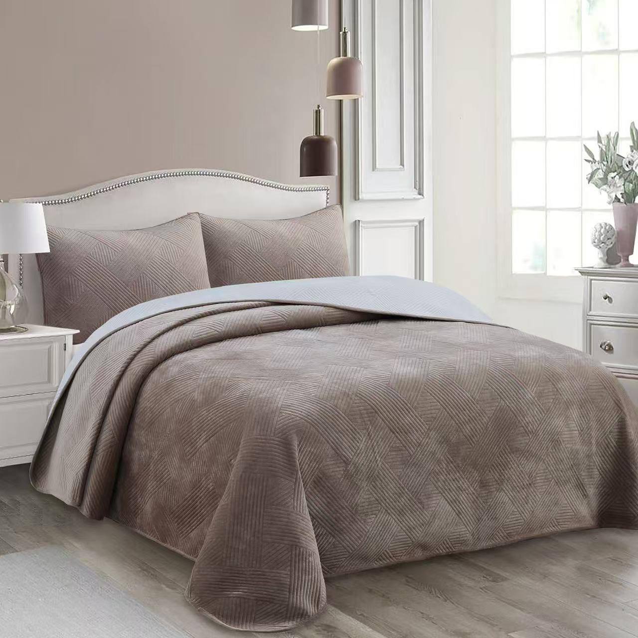 Велюровое покрывало с двумя наволочками в комплекте — это отличный выбор для тех, кто ценит комфорт, тепло и стиль. Его нежные тона и качественный материал делают его не только красивым, но и практичным дополнением к любому интерьеру.