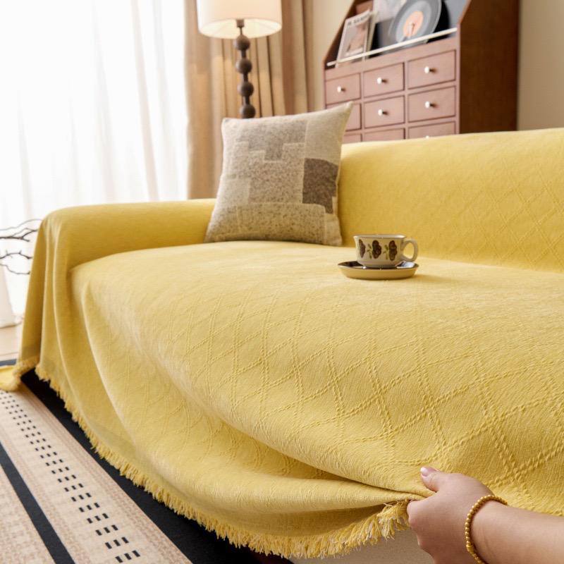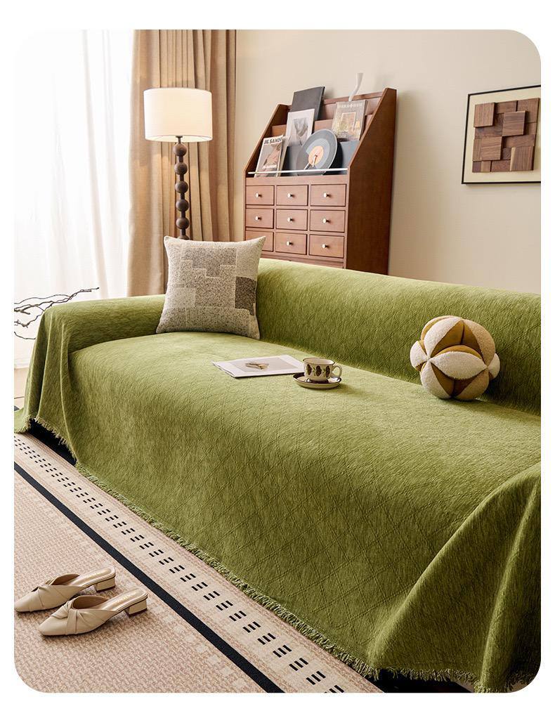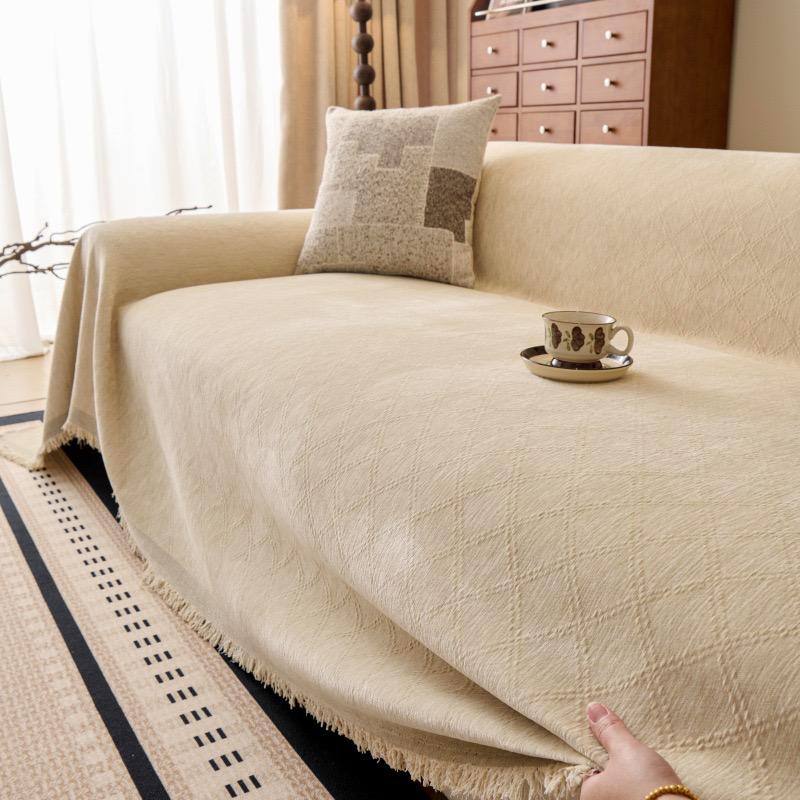 Выполненный из плотного, износостойкого, но при этом невероятно мягкого материала, плед надежно защищает обивку дивана и дарит приятные тактильные ощущения при отдыхе. Благодаря свободному крою, аксессуар легко адаптируется под любую форму мебели, мгновенно преображая комнату без лишних усилий. Богатая палитра природных оттенков — от глубокого оливкового до мягкого кремового — позволяет подобрать идеальный вариант, который станет гармоничным акцентом в вашей гостиной, создавая атмосферу тепла и безупречного стиля.