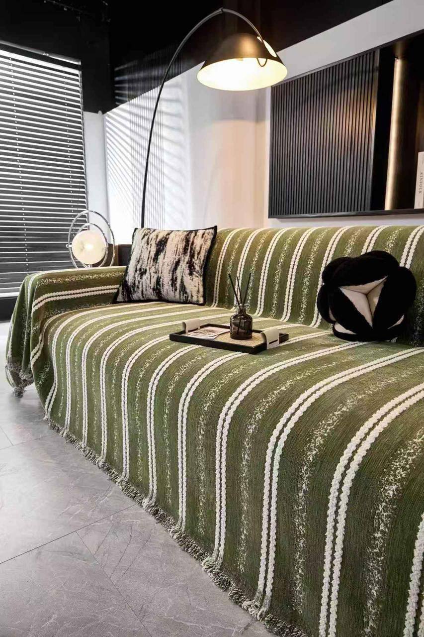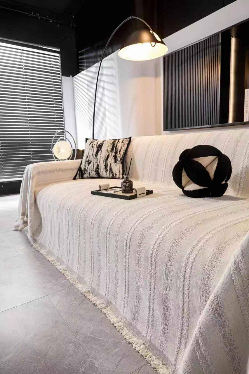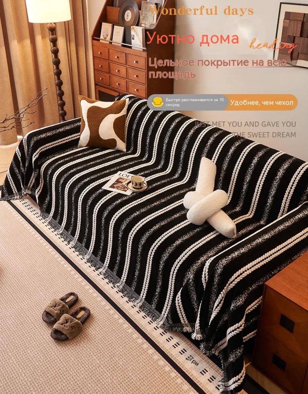 Благодаря особому переплетению нитей, накидка надежно фиксируется на диване, обеспечивая полное покрытие без лишних складок. Лаконичная бахрома по краям добавляет изделию завершенность, превращая обычный плед в стильный элемент «тихой роскоши».