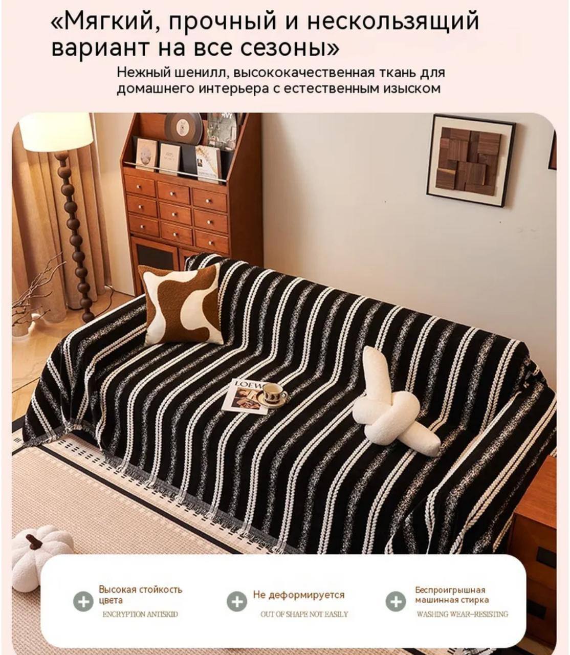 Фактурная накидка из благородного шенилла — идеальный апгрейд для вашей зоны отдыха. Объемные вертикальные полосы с имитацией плетения «косичкой» создают выразительный 3D-эффект, делая интерьер более архитектурным и уютным. Ткань отличается высокой плотностью и мягкостью: она не деформируется со временем, легко переносит машинную стирку и практически не мнется, восстанавливая форму за считанные секунды.