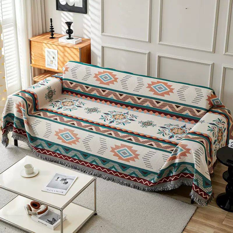 Главное преимущество модели — ее универсальность: благодаря реверсивному дизайну вы получаете два разных визуальных решения в одном аксессуаре. Светлая сторона привносит в комнату свежесть и легкость, в то время как оборотная сторона с инверсией цветов позволяет создавать более глубокие и насыщенные акценты. Покрывало надежно защищает мебель, отлично драпируется и не скользит, превращая обычный диван в центральный арт-объект гостиной в стиле бохо или современного этнического минимализма.